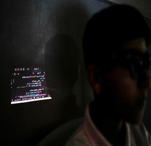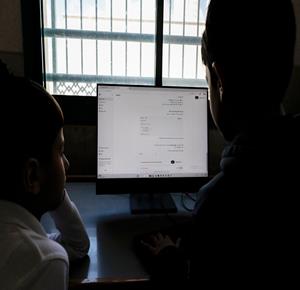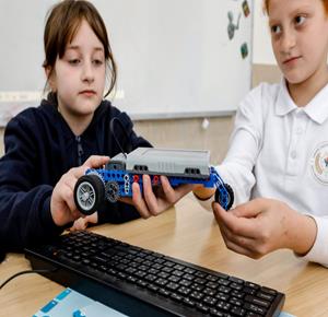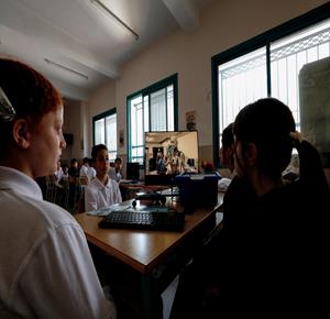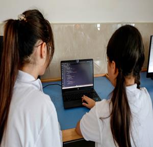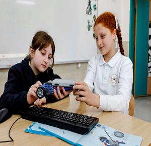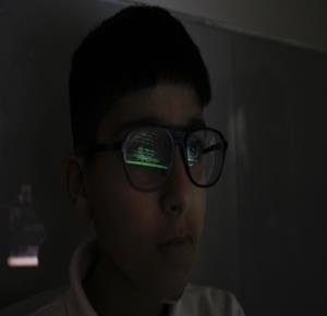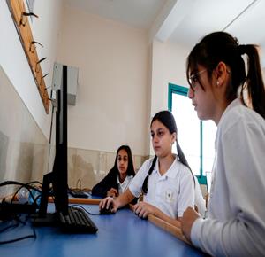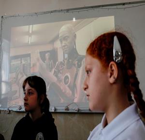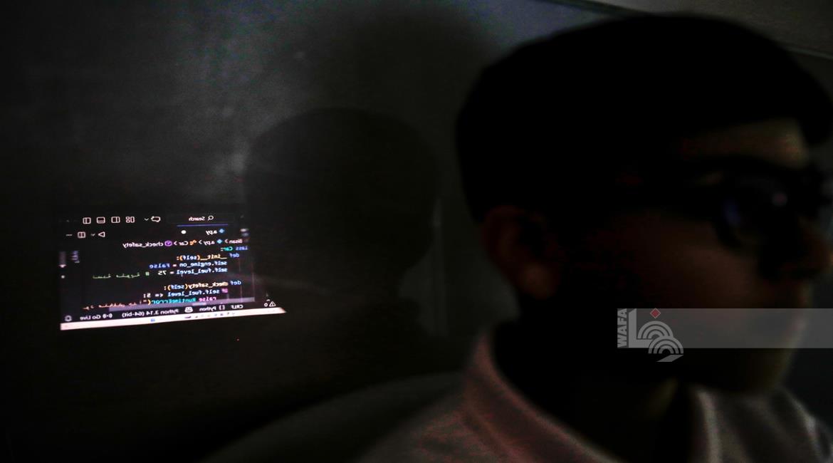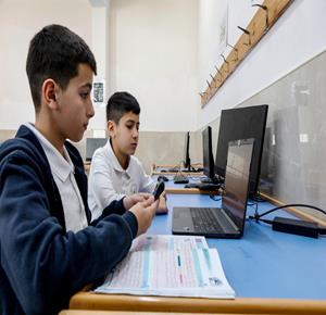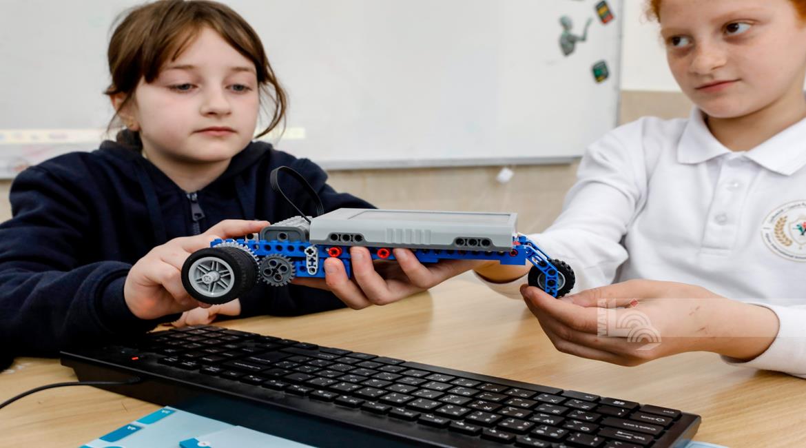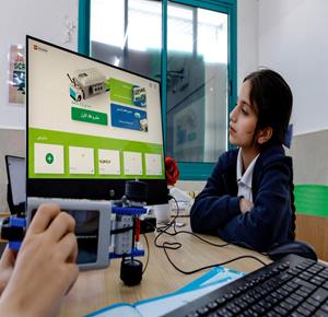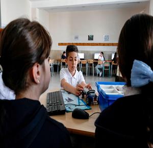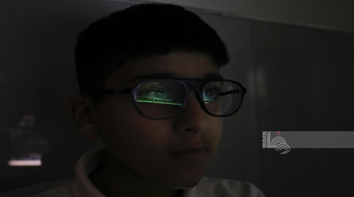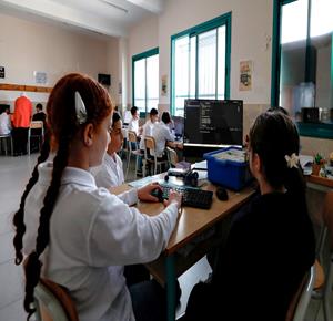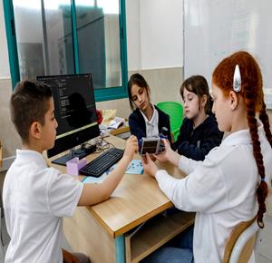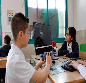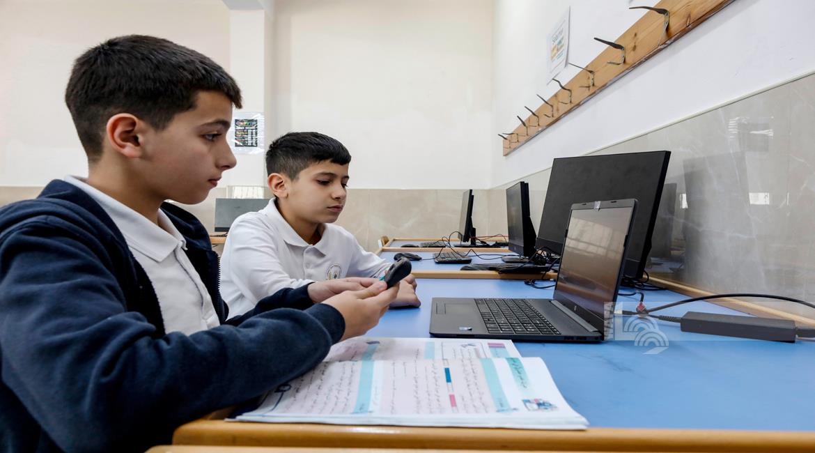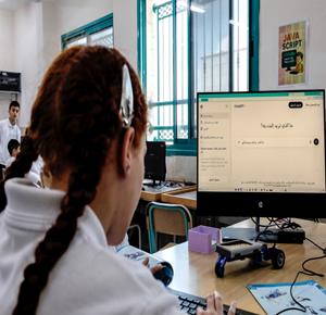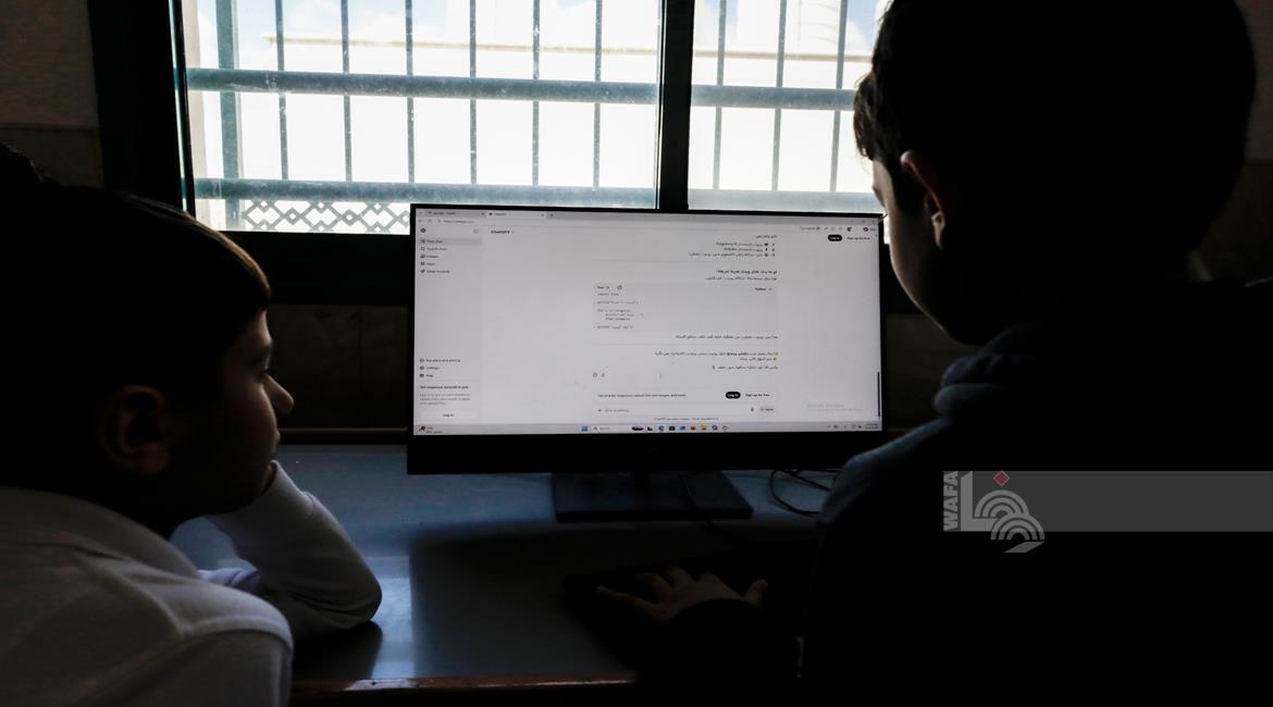 جنين - طلاب اثناء تعلمهم استخدام الذكاء الاصطناعي في العمليات الحسابية والتحكم في "روبوت" آلي