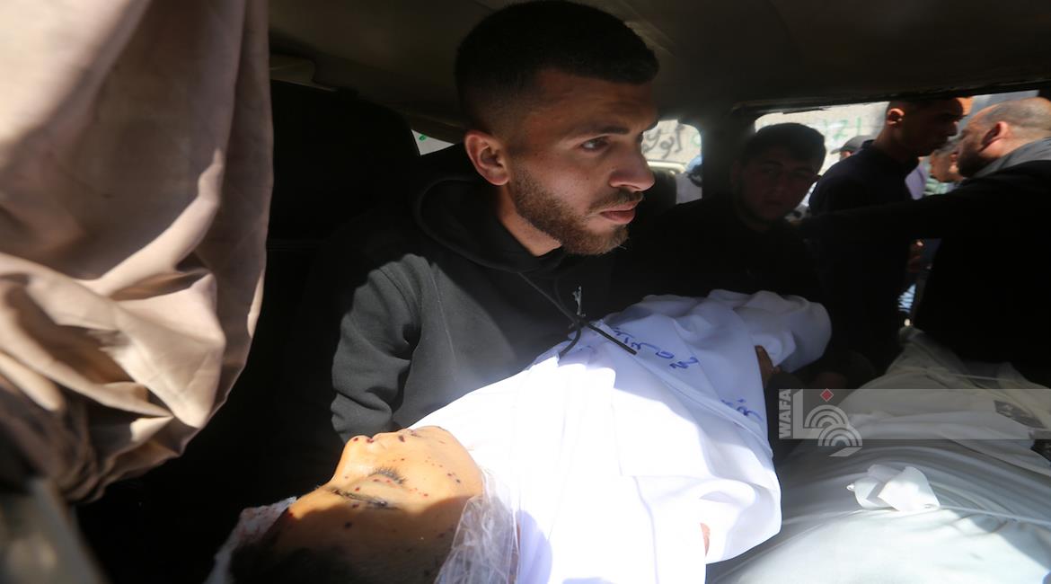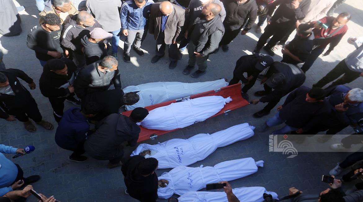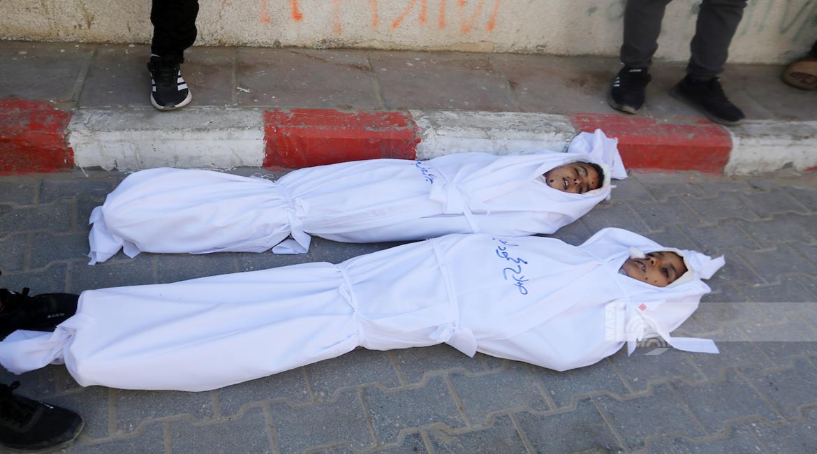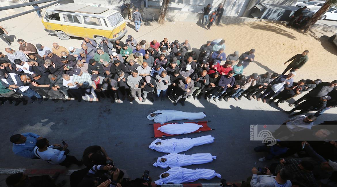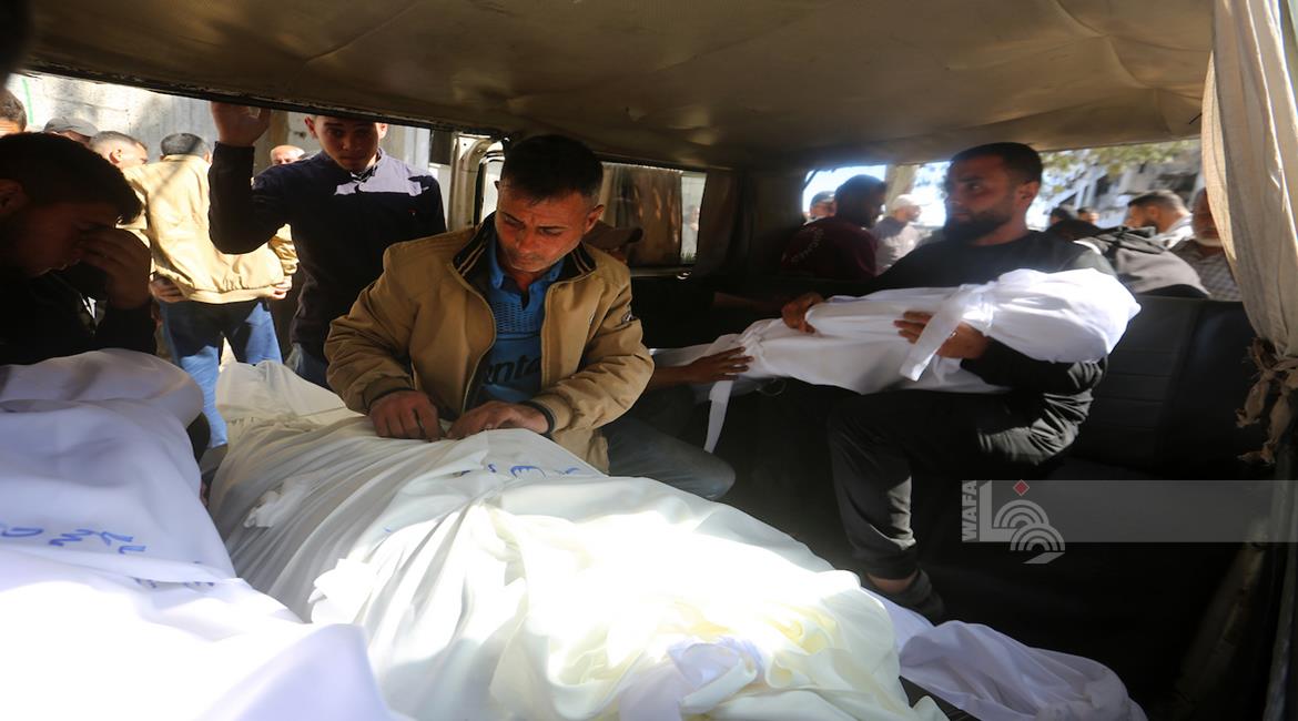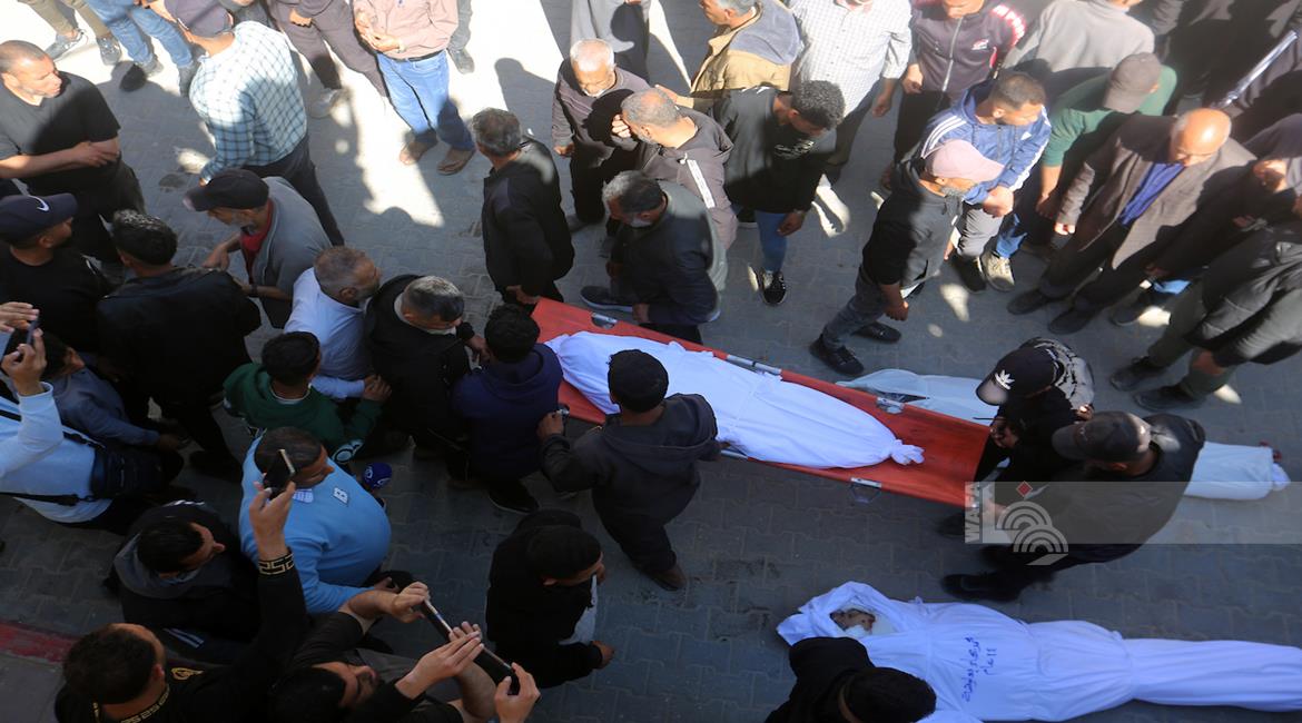 غزة - وداع جثامين 5شهداء، بينهم 3 أطفال، في مستشفى الشفاء بمدينة غزة، بعدما ارتقوا الليلة في غارة إسرائيلية استهدفت تجمعاً للمواطنين في منطقة بيت لاهيا شمال قطاع غزة.