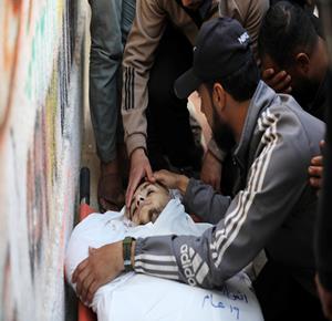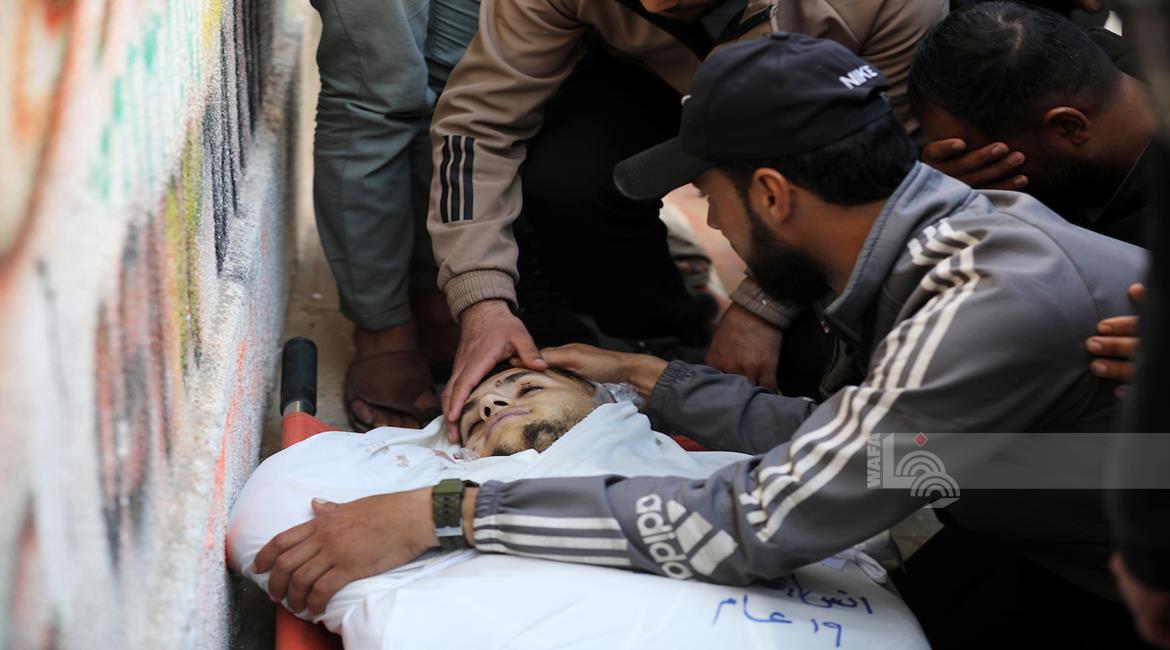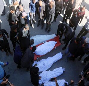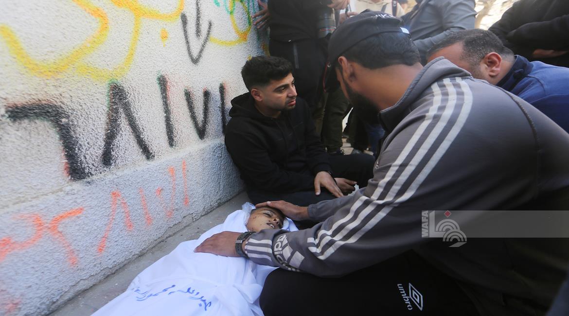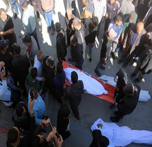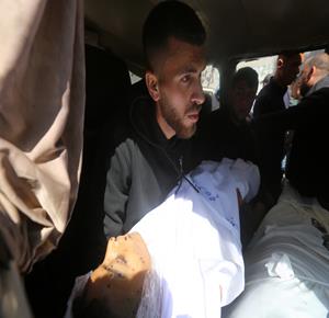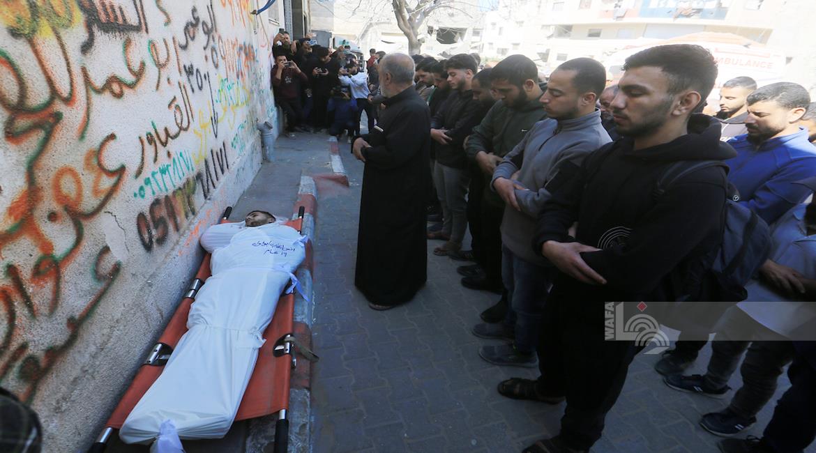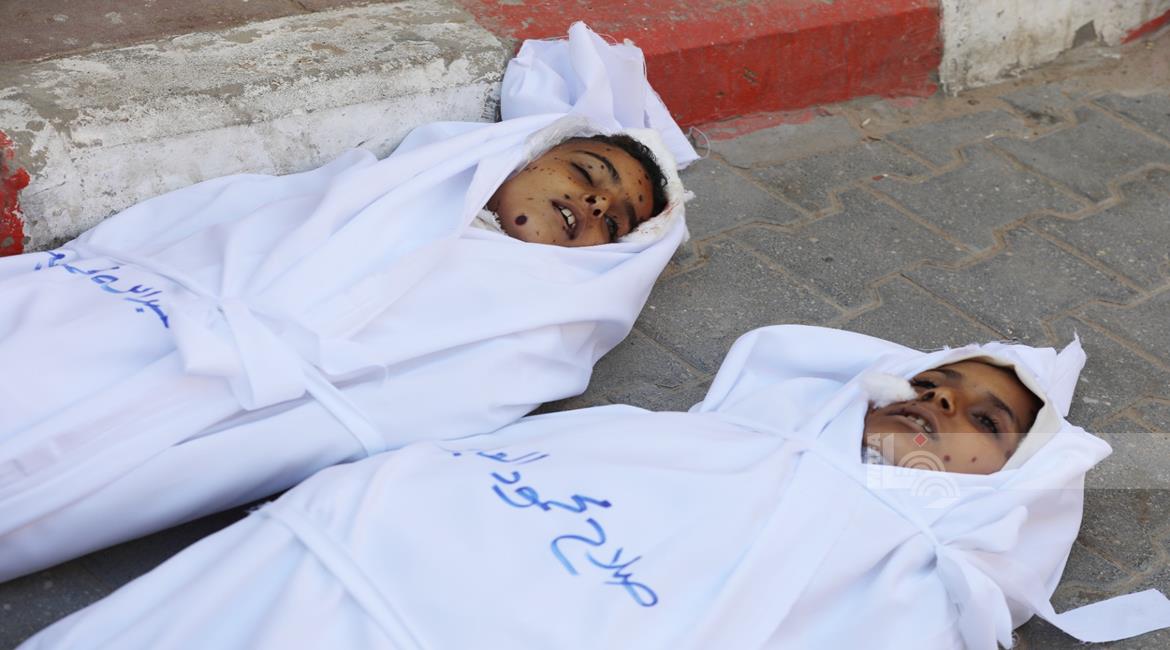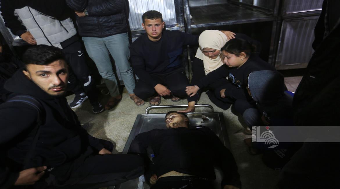 غزة - وداع جثامين 5شهداء، بينهم 3 أطفال، في مستشفى الشفاء بمدينة غزة، بعدما ارتقوا الليلة في غارة إسرائيلية استهدفت تجمعاً للمواطنين في منطقة بيت لاهيا شمال قطاع غزة.