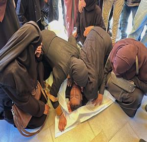 غزة - وداع وتشييع جثمان الشهيد يحيى أبو شلهوب جراء غارة إسرائيلية في خان يونس جنوب قطاع غزة
