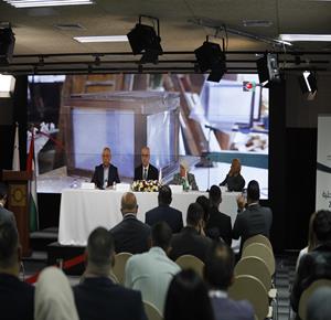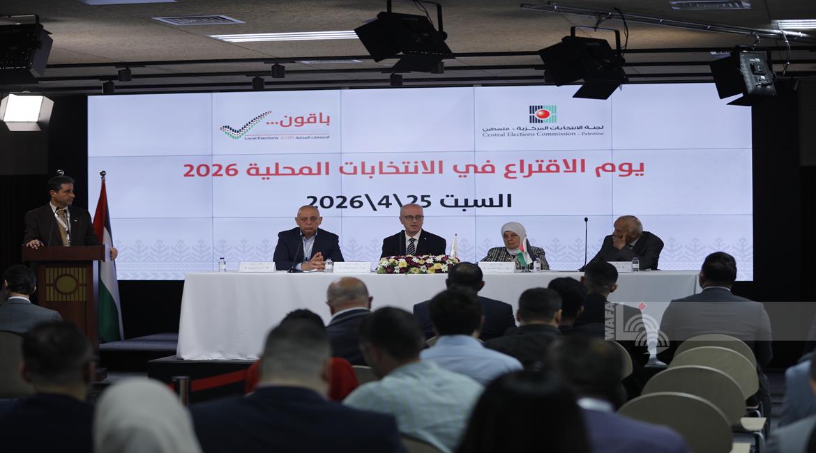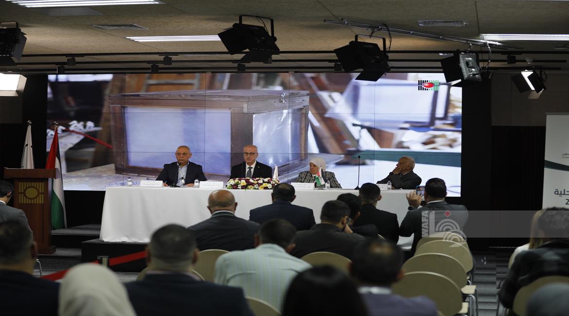 البيرة - رئيس لجنة الانتخابات المركزية رامي الحمد الله،خلال المؤتمر الصحفي الذي عقد في مقر لجنة الانتخابات بمدينة البيرة