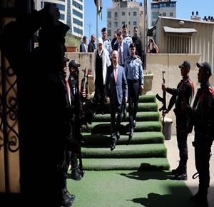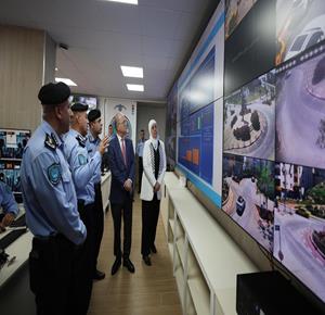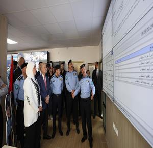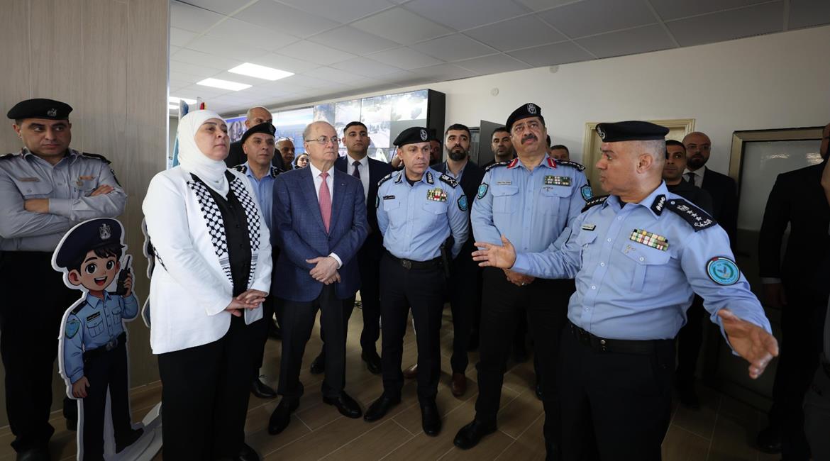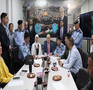 رام الله - رئيس الوزراء محمد مصطفى يتفقد غرفة العمليات المركزية للشرطة لمتابعة سير عملية الاقتراع
