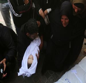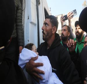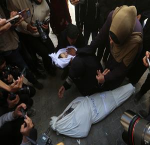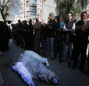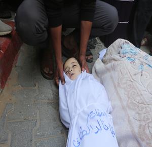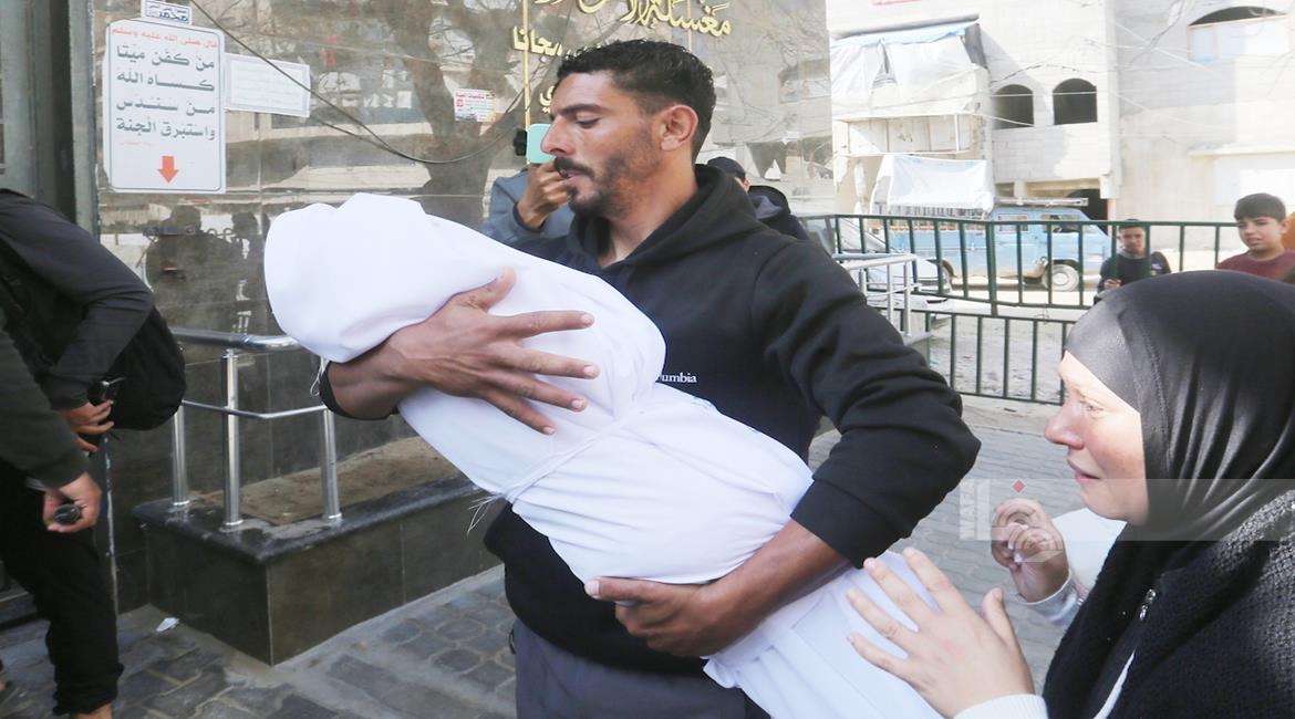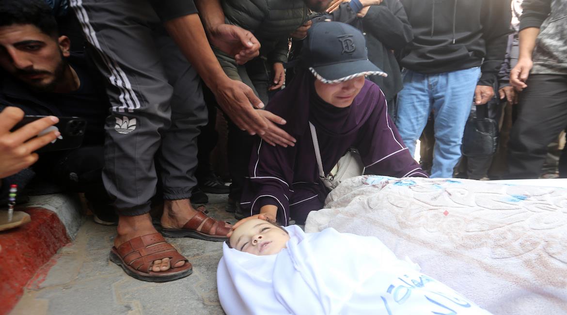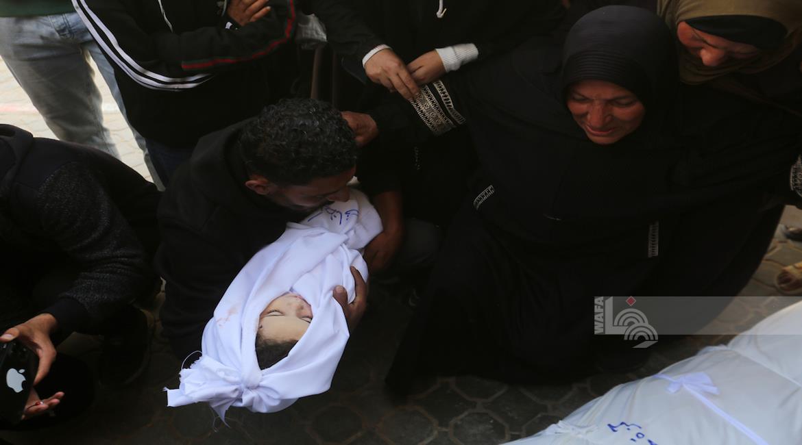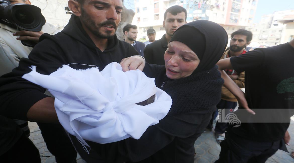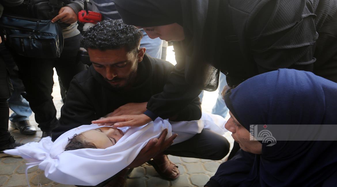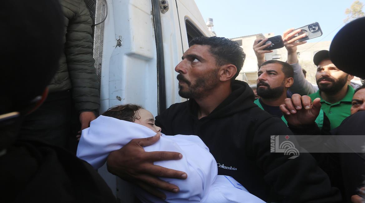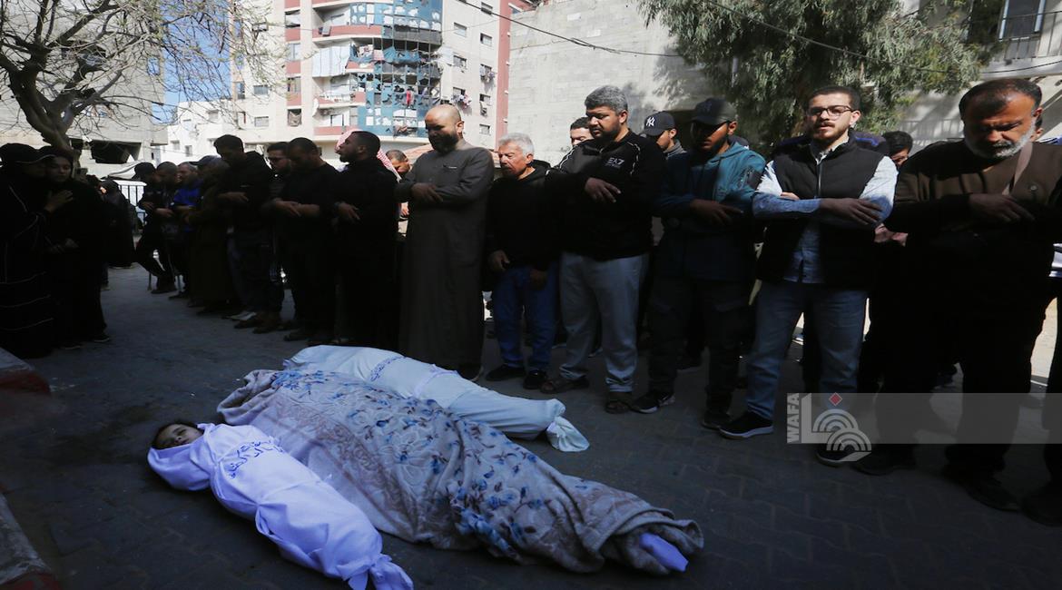 وداع جثامين 5شهداء، بينهم 3 أطفال، في مستشفى الشفاء بمدينة غزة، بعدما ارتقوا الليلة في غارة إسرائيلية استهدفت تجمعاً للمواطنين في منطقة بيت لاهيا شمال قطاع غزة.