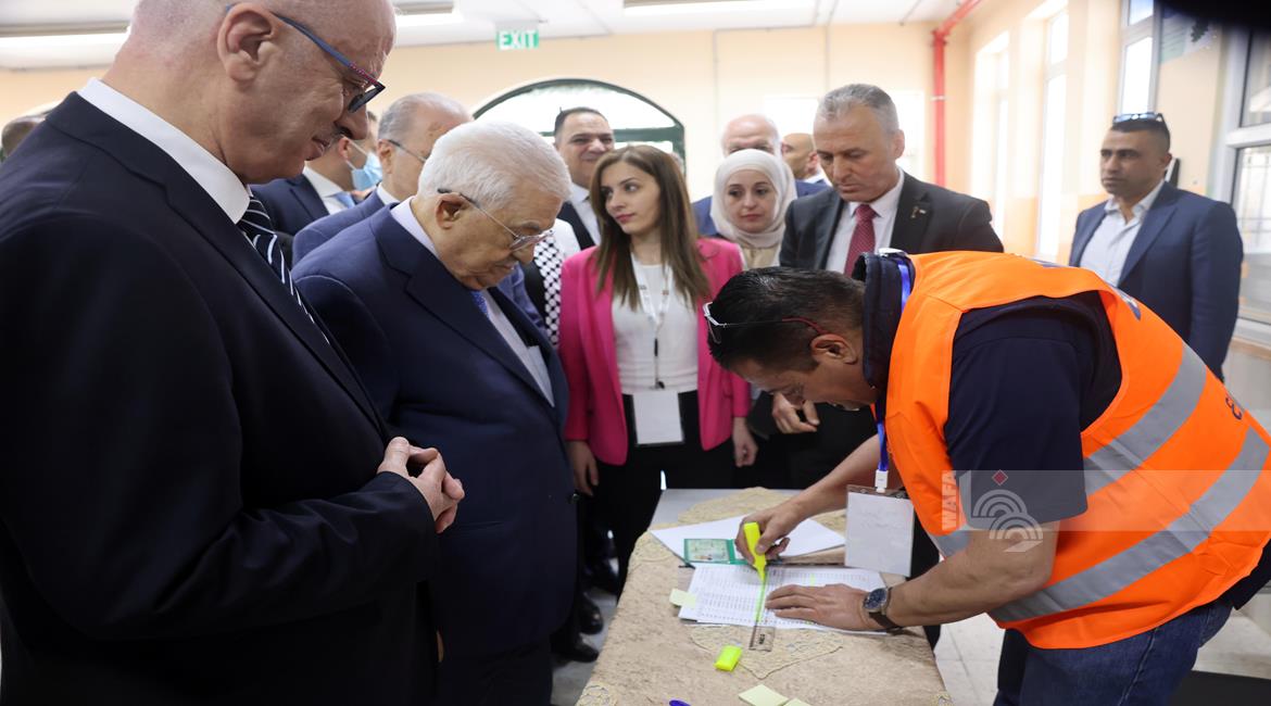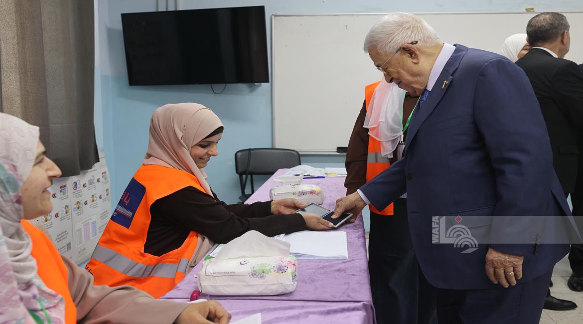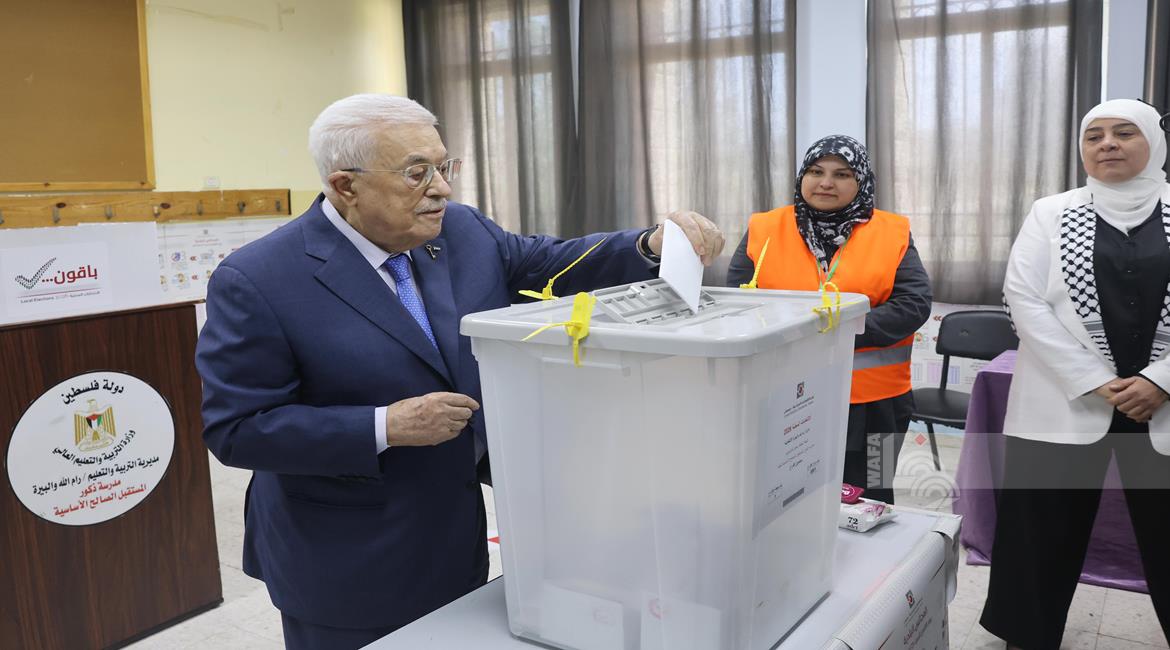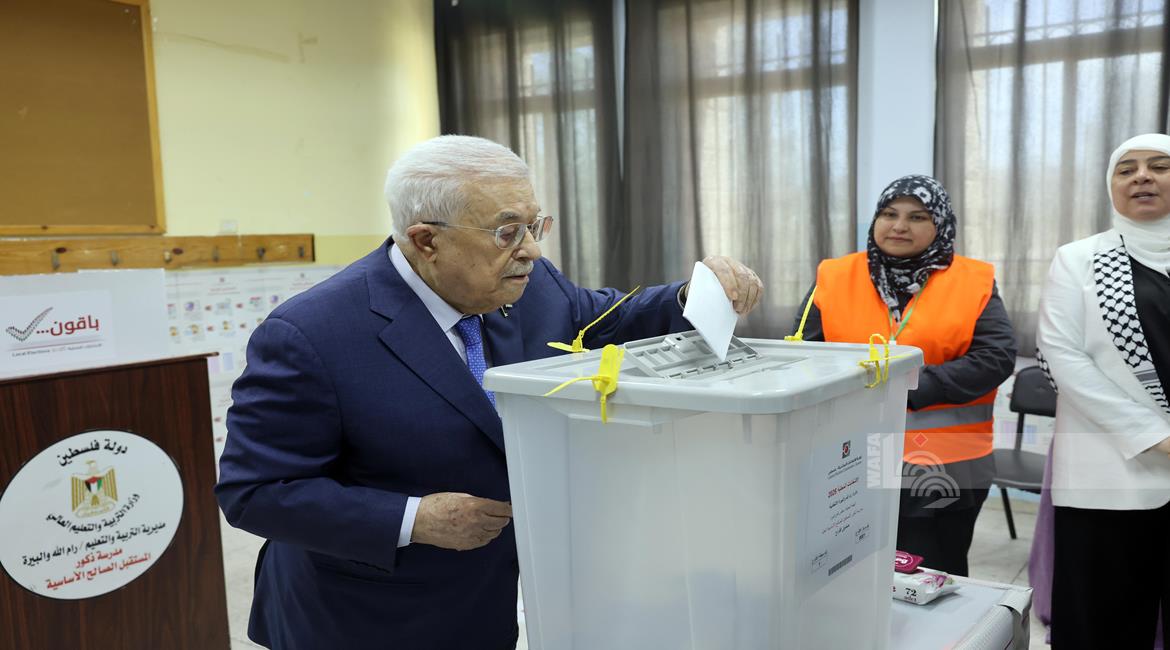 البيرة - الرئيس محمود عباس، يدلي بصوته في انتخابات الهيئات المحلية لعام 2026، بمركز الاقتراع في مدرسة المستقبل الصالح بمدينة البيرة