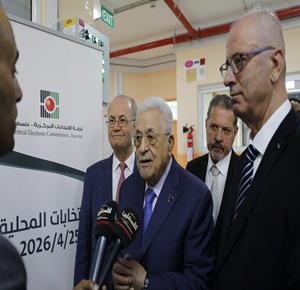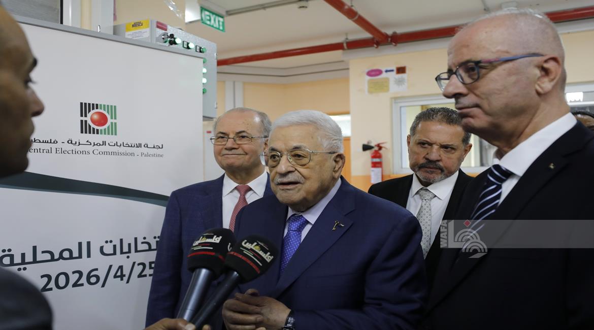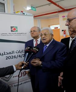 الرئيس محمود عباس، يدلي بصوته في انتخابات الهيئات المحلية لعام 2026، بمركز الاقتراع في مدرسة المستقبل الصالح بمدينة البيرة