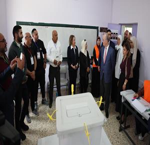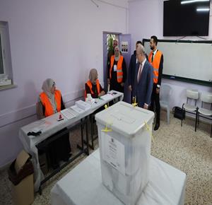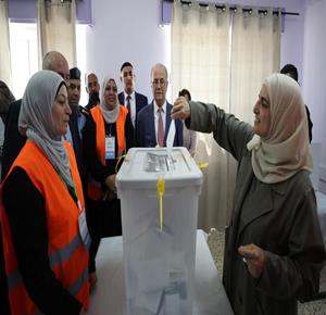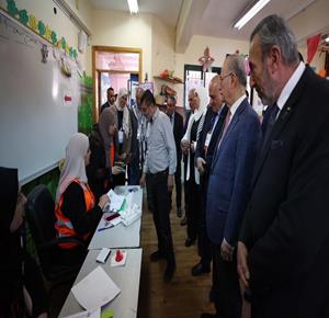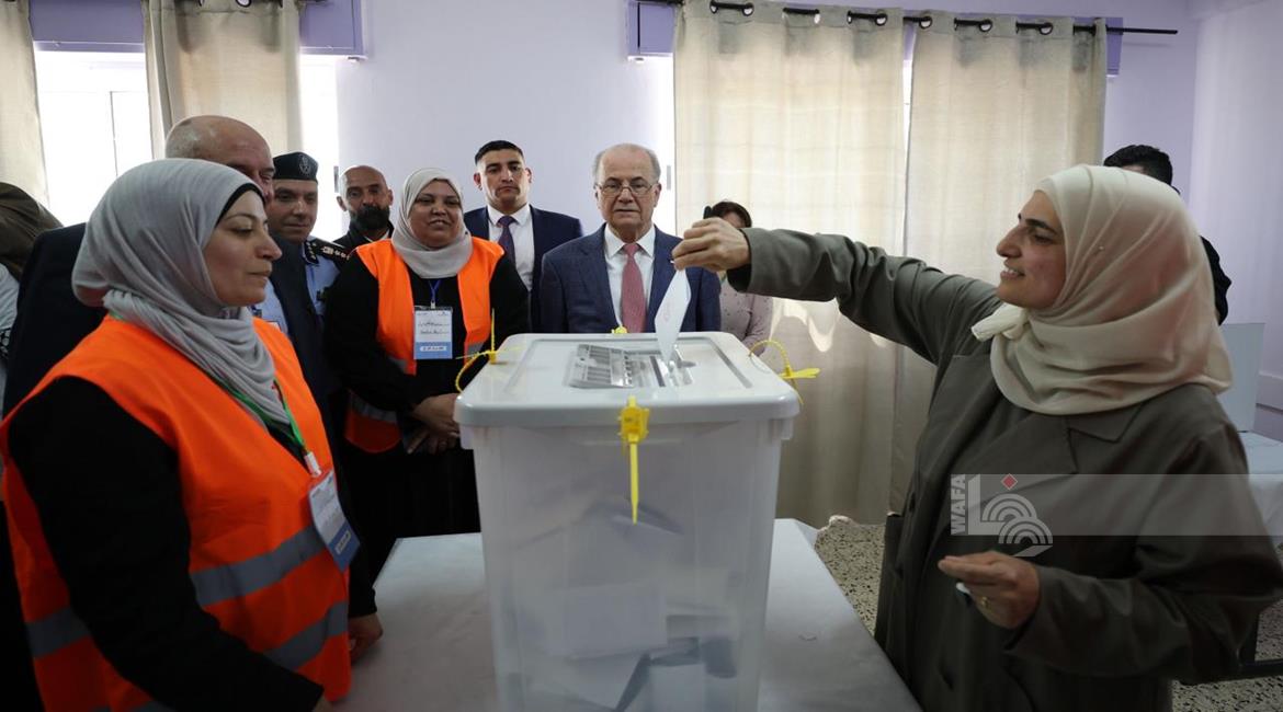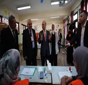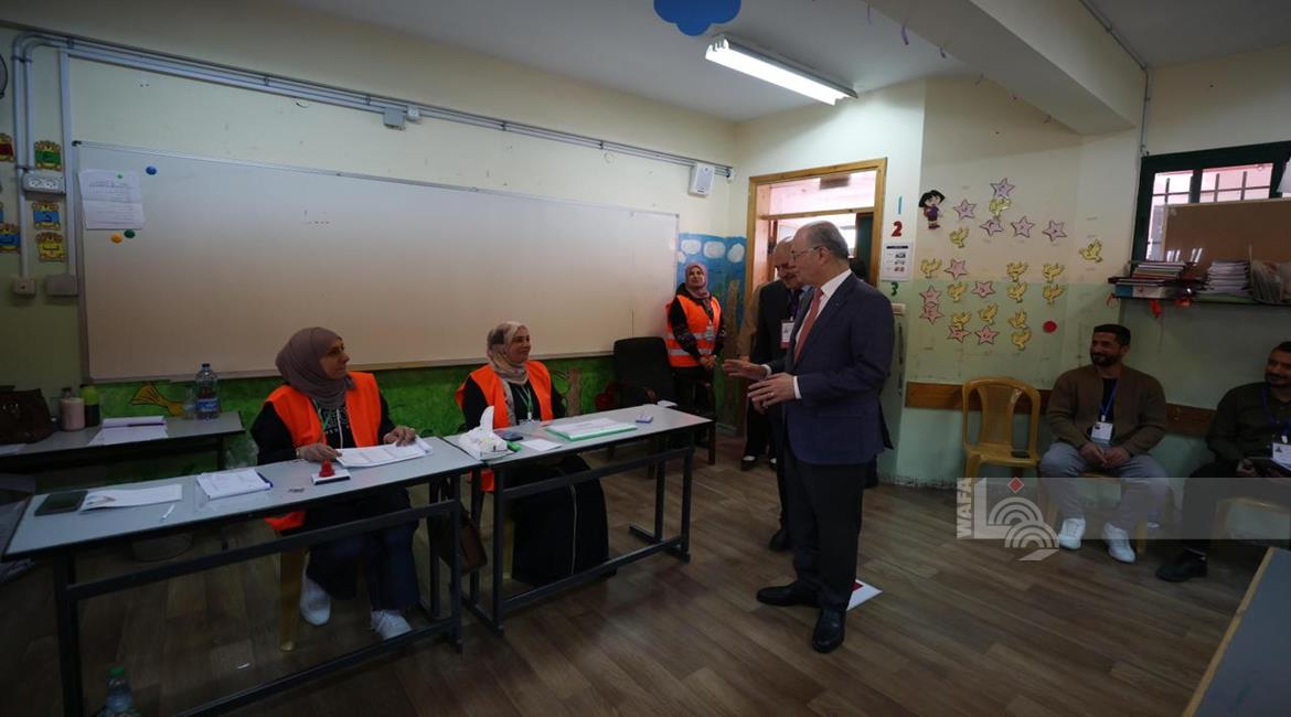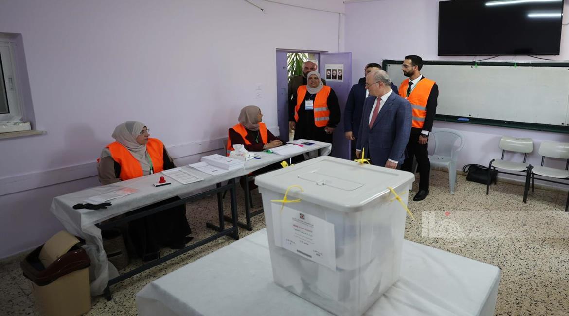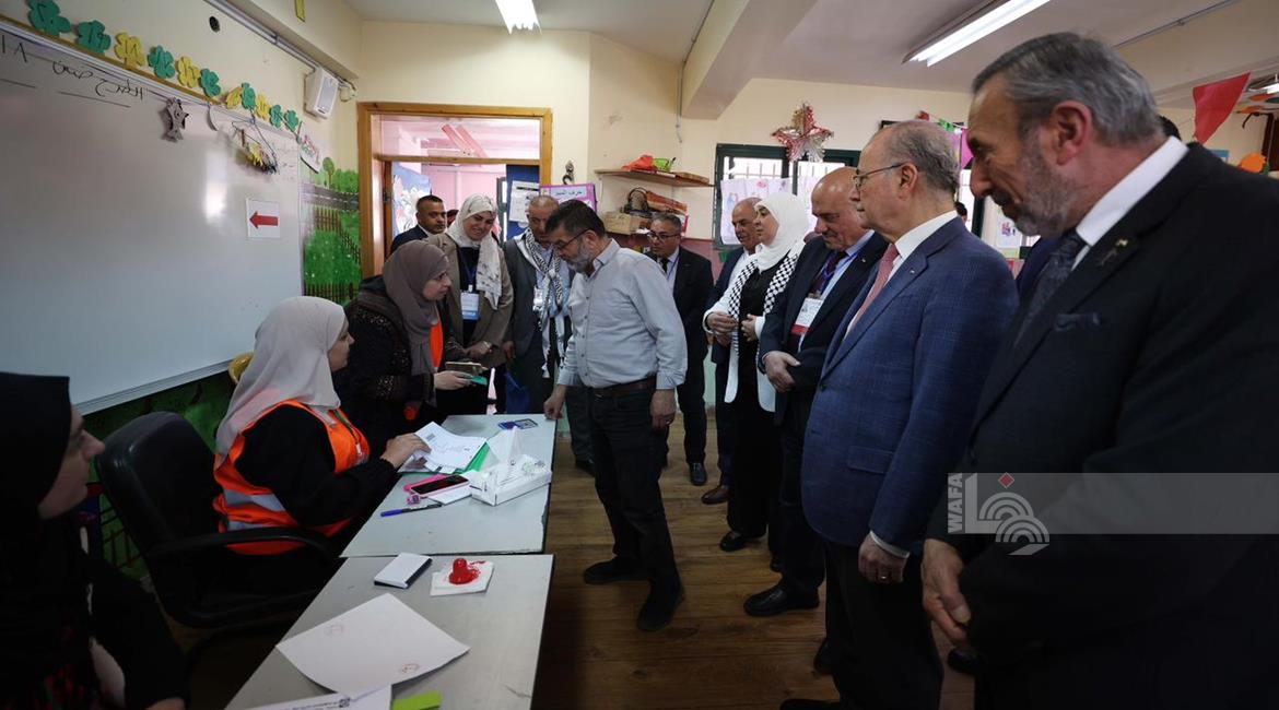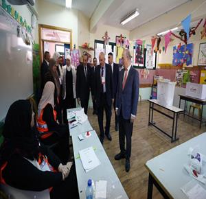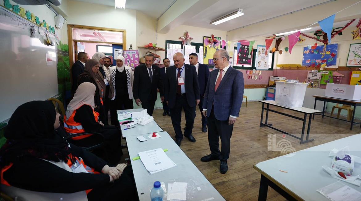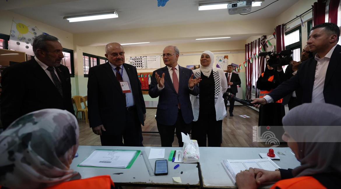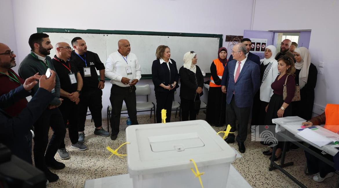 رام الله - رئيس الوزراء محمد مصطفى، خلال تفقده مركزي اقتراع للانتخابات المحلية في مدينة البيرة وبلدة بيرزيت
