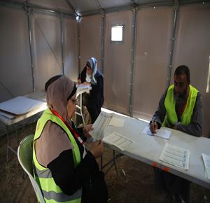 غزة - فرز اصوات الناخبين بعد اغلاق صناديق الاقتراع في دير البلح وسط القطاع