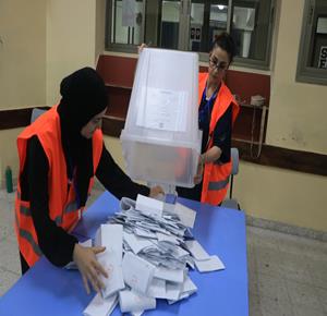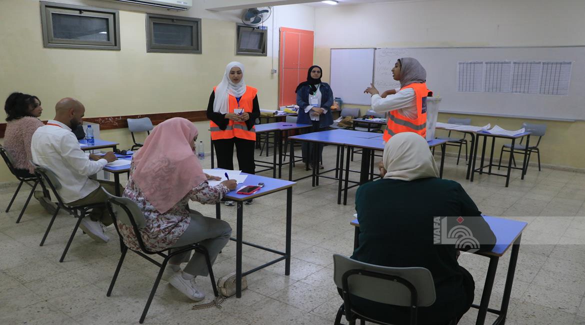 فرز اصوات الناخبين بعد اغلاق صناديق الاقتراع في دير البلح وسط القطاع