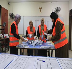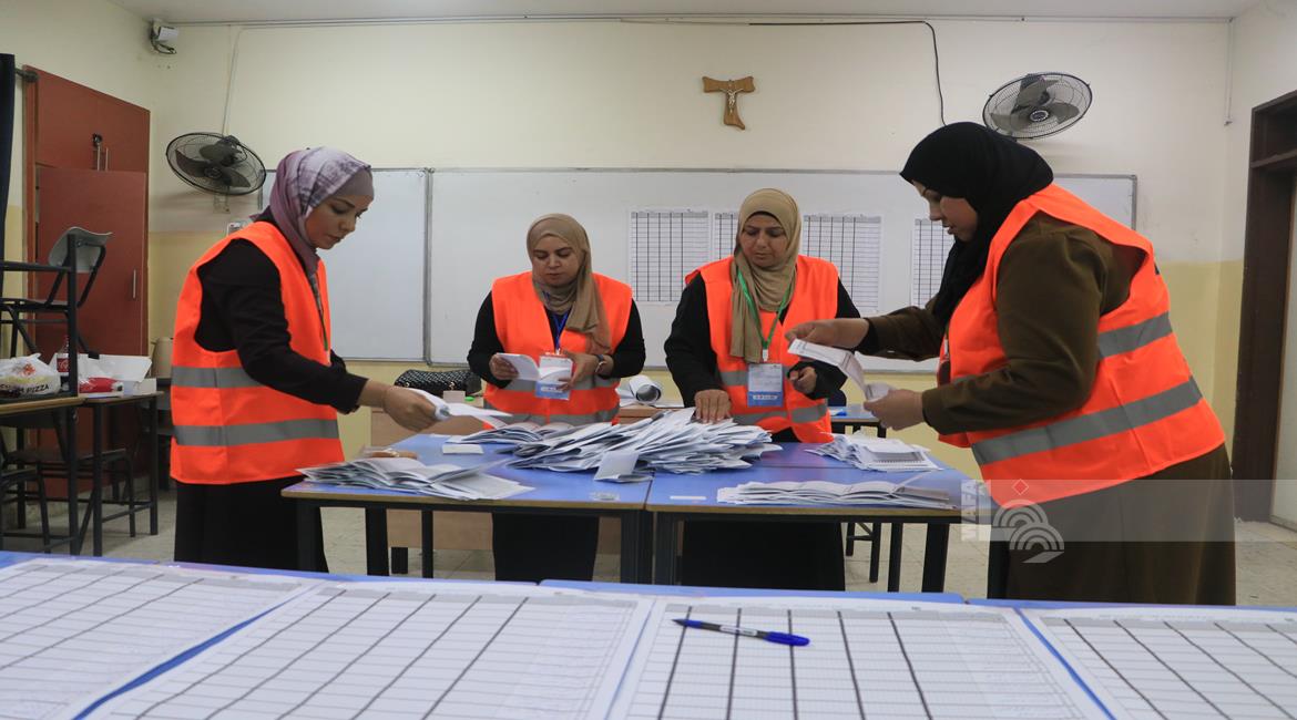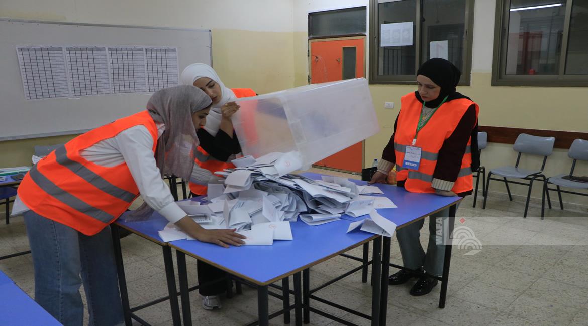 فرز الاصوات عقب اغلاق صناديق الاقتراع في مدينة البيرة