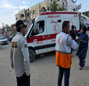 غزة - عدد من المرضى والجرحى برفقة مرافقيهم يغادرون مقر الهلال الأحمر في خان يونس، جنوب قطاع غزة، متجهين نحو معبر رفح لتلقي العلاج في الخارج