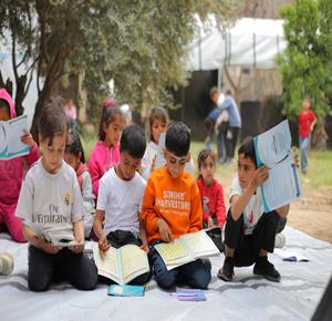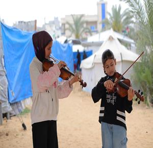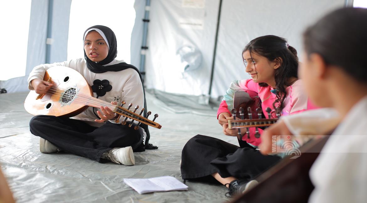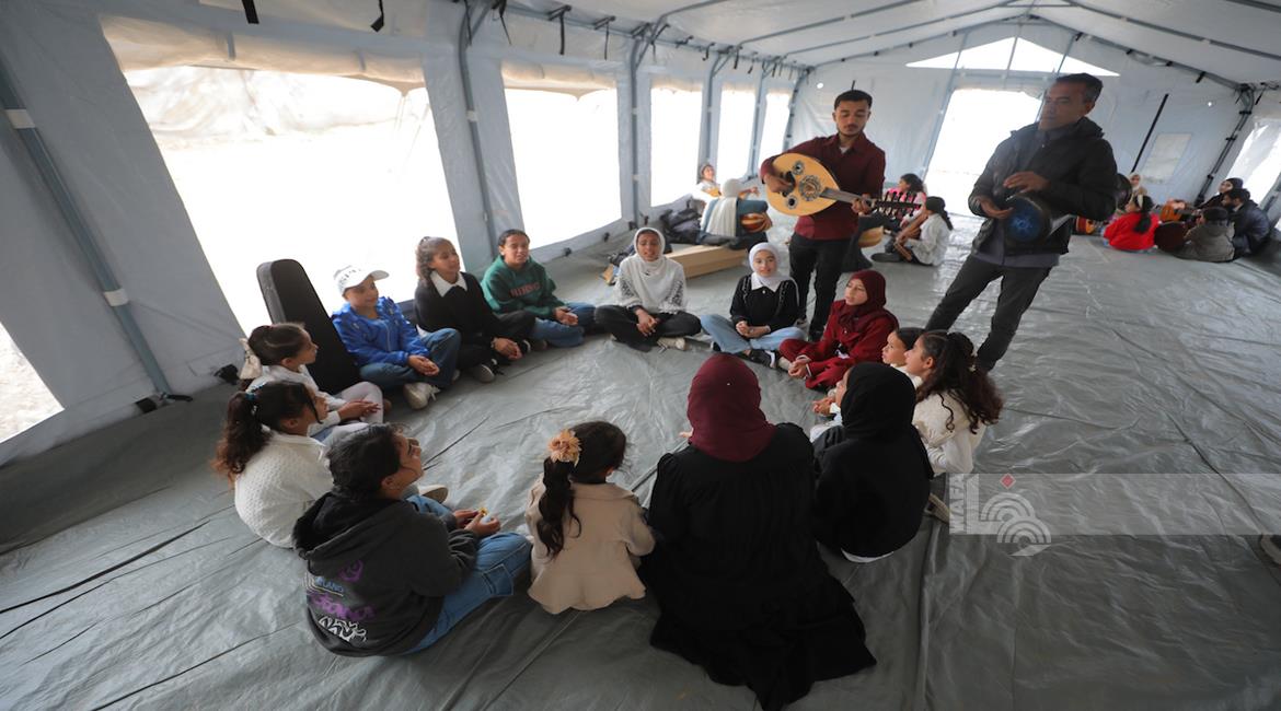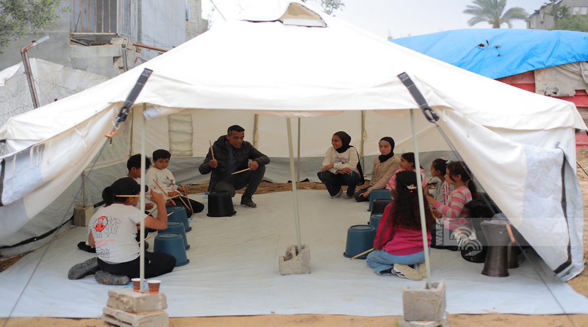 غزة - أنشطة ترفيه ودعم نفسي للتخفيف على أطفال نازحين في مخيم النصيرات وسط قطاع غزة