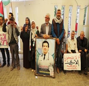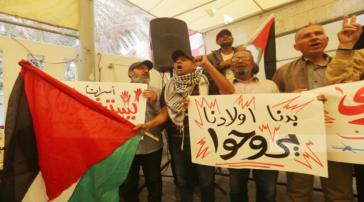 غزة - عائلات الاسرى تنظم وقفة أمام مقر اللجنة الدولية للصليب الأحمر في مدينة غزة للمطالبة بالافراج عن ذويهم في سجون الاحتلال