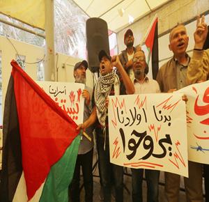 طلبة خربة ام الخير بمسافر يطا يواصلون الاعتصام والدراسة على جانب طريق مغلق من قبل مستعمرين وقوات الاحتلال الاسرائيلي
