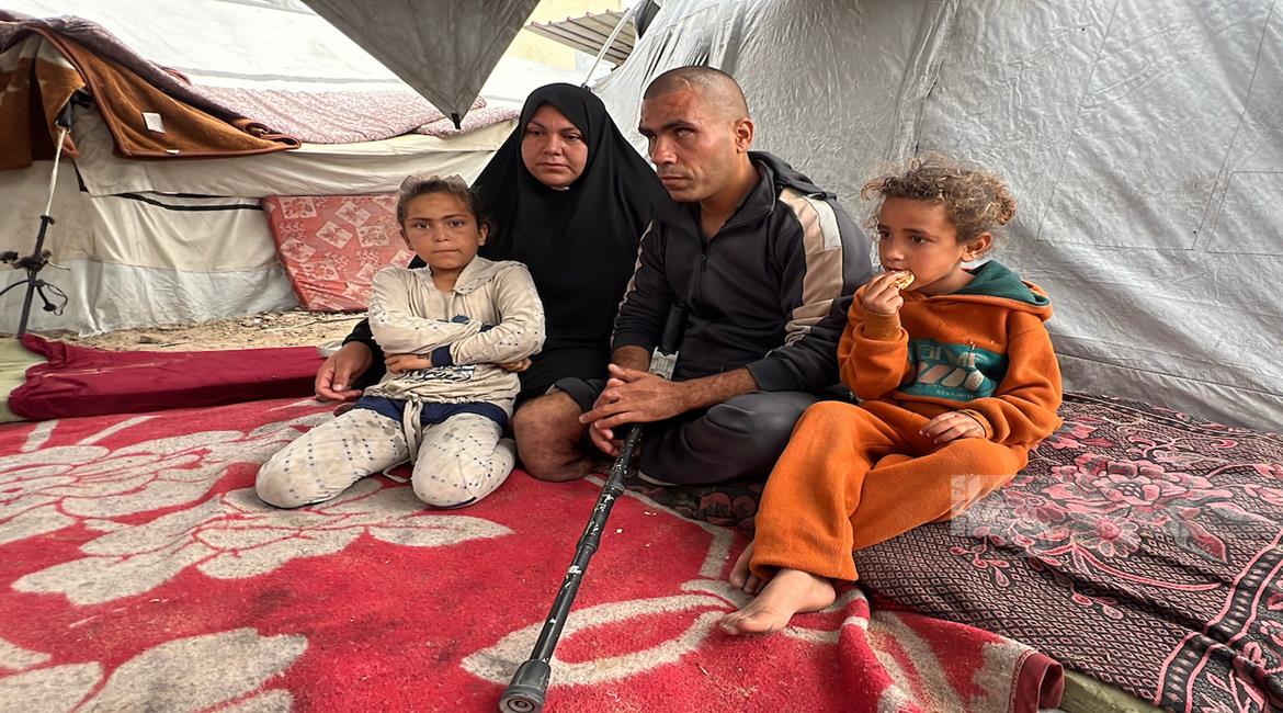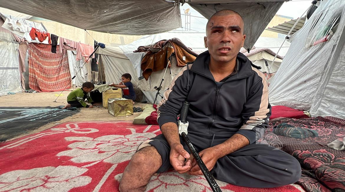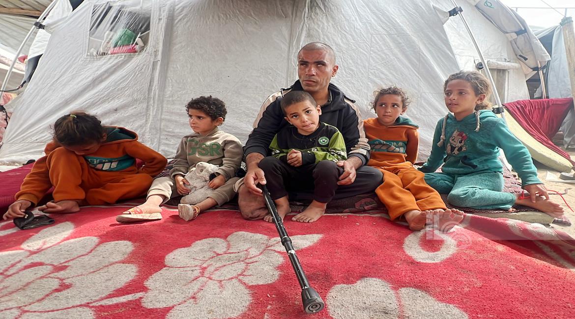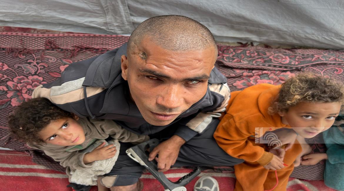 غزة - المواطن محمود الزربا فقد بصره وبُترت ساقه اليمنى إثر إصابته في قصف الاحتلال، يعيش مع أطفاله في ظروف إنسانية صعبة داخل خيمة في دير البلح بعد نزوحهم من شمال قطاع غزة