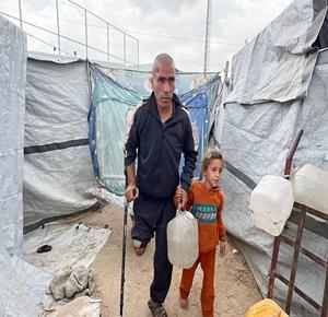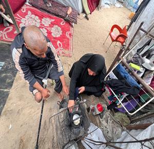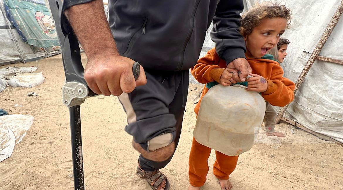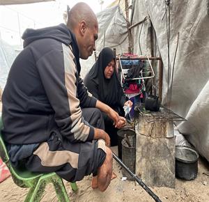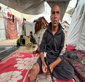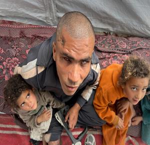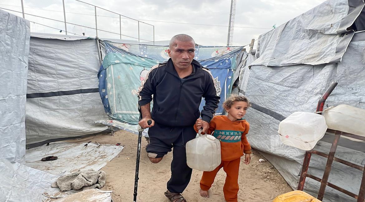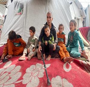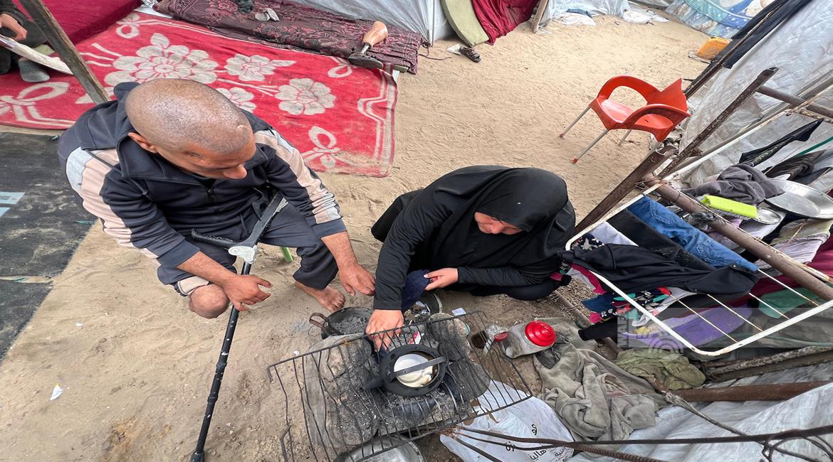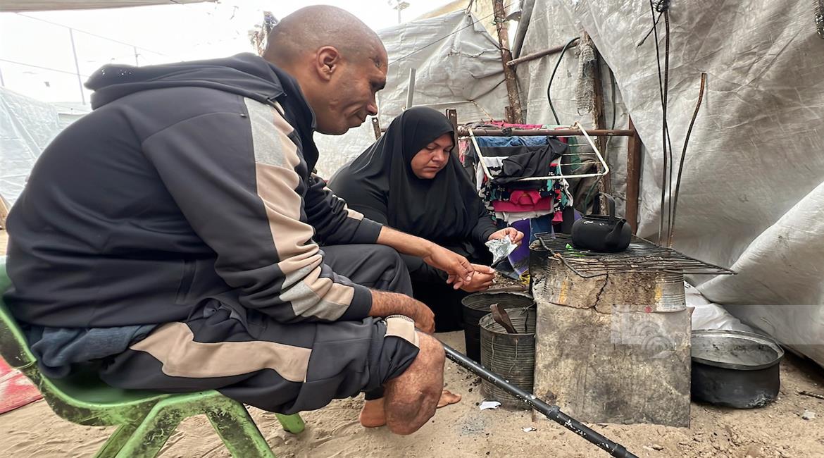 غزة - المواطن محمود الزربا فقد بصره وبُترت ساقه اليمنى إثر إصابته في قصف الاحتلال، يعيش مع أطفاله في ظروف إنسانية صعبة داخل خيمة في دير البلح بعد نزوحهم من شمال قطاع غزة