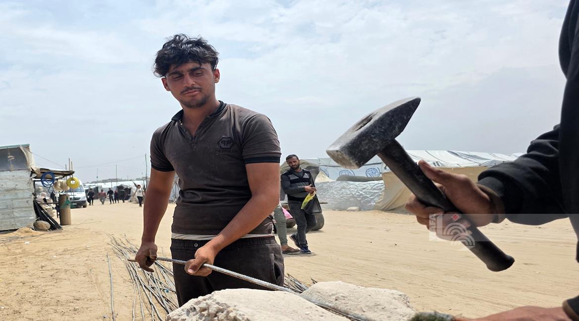 المواطن محمود الزربا فقد بصره وبُترت ساقه اليمنى إثر إصابته في قصف الاحتلال، يعيش مع أطفاله في ظروف إنسانية صعبة داخل خيمة في دير البلح بعد نزوحهم من شمال قطاع غزة