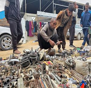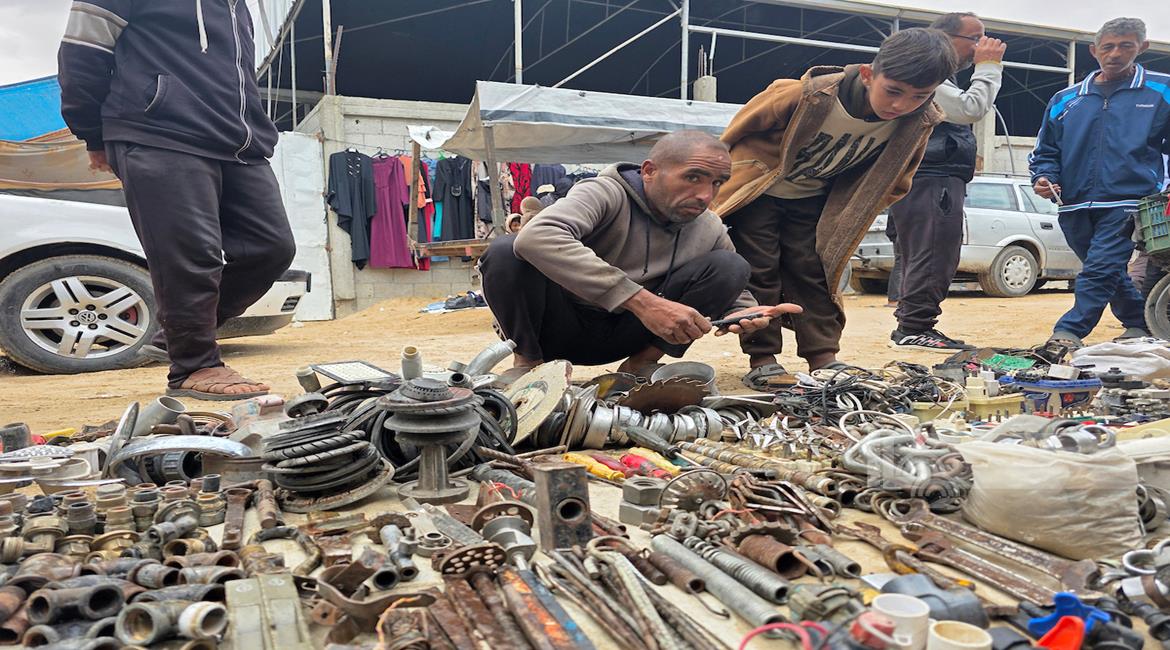 غزة - إقبال كبير على الشراء من سوق الخردة، المستخرجة من بين أنقاض المنازل المدمرة في خان يونس جنوب قطاع غزة