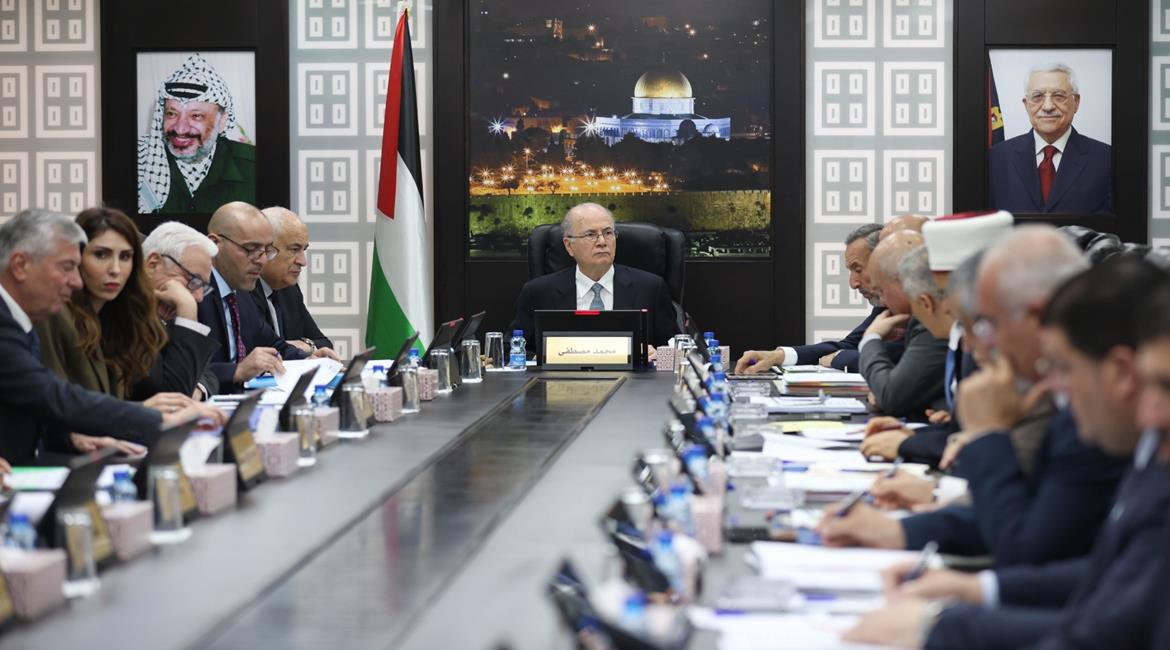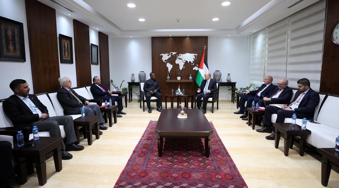 رام الله - رئيس الوزراء محمد مصطفى أثناء استقباله رئيس اتحاد كُتَّاب عموم أفريقيا الكاتب النيجيري والي أوكوديران