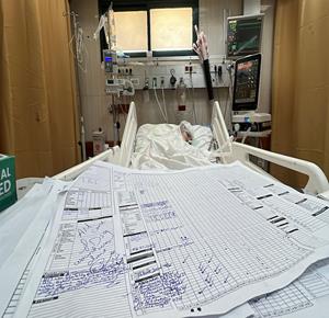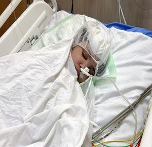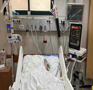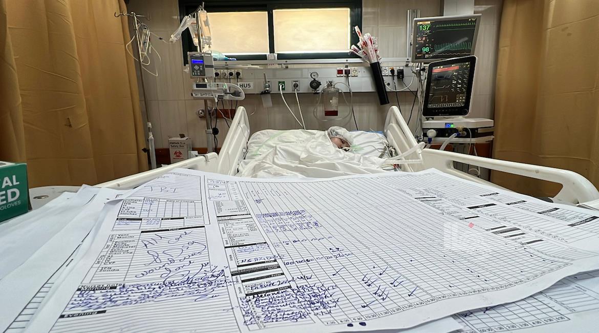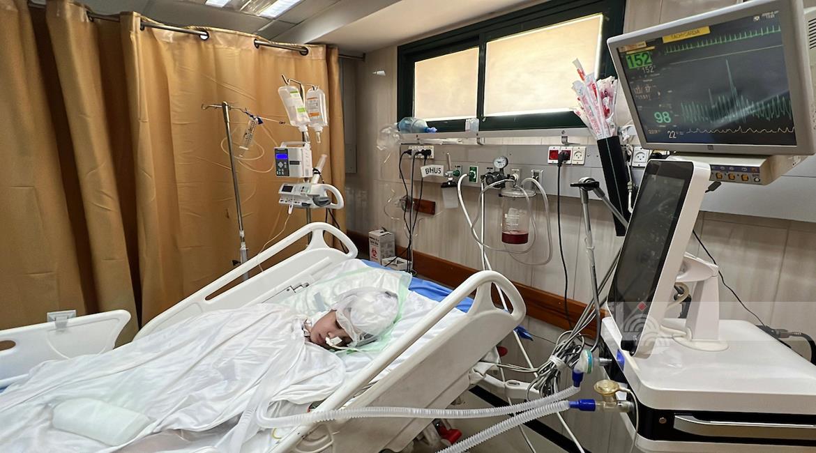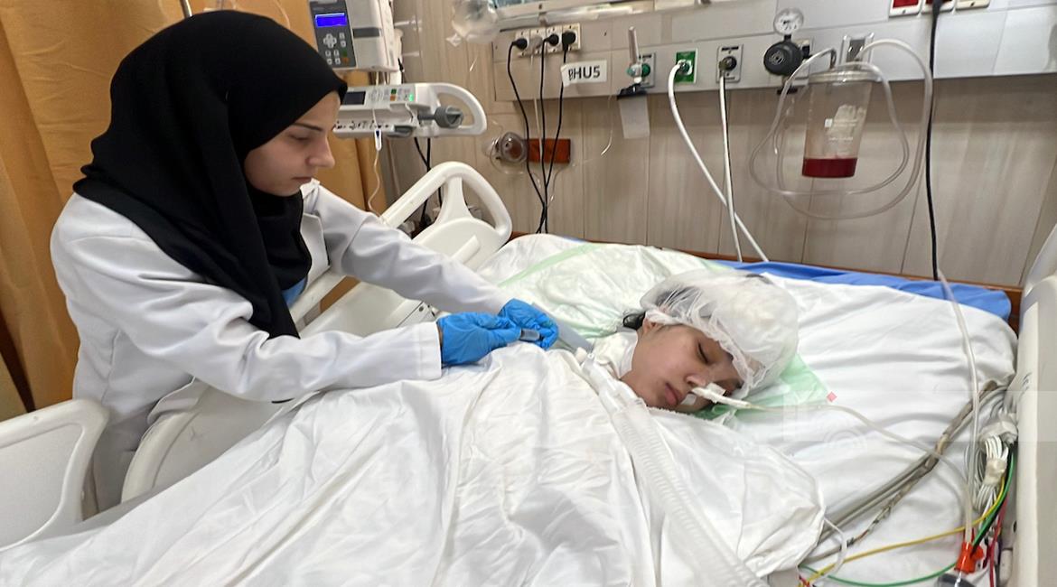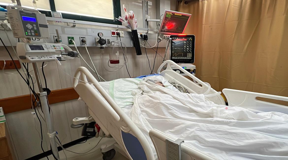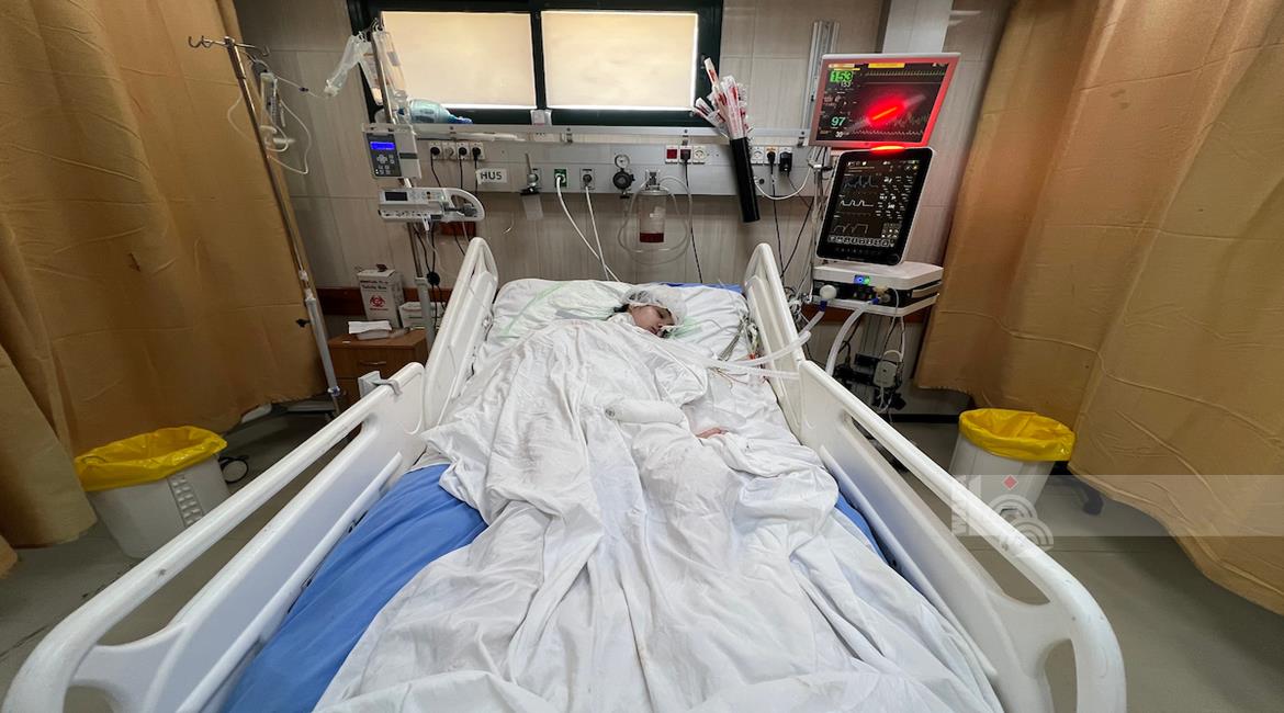 غزة - الفتاة حلا درويش، ترقد في وحدة العناية المركزة بمستشفى شهداء الأقصى في دير البلح، بعد إصابتها برصاص قوات الاحتلال خلال تواجدها داخل منزلها شرق مخيم المغازي
