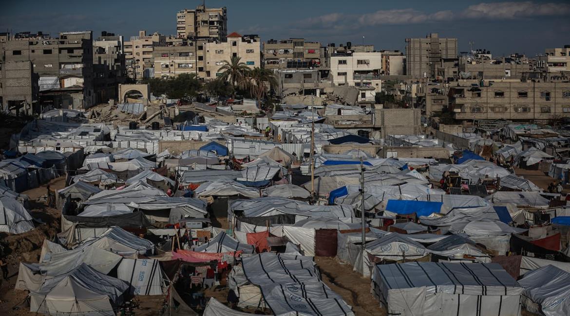 مشاهد عامة لخيام النازحين المتكدسة بين المباني المدمرة في وسط مدينة غزة