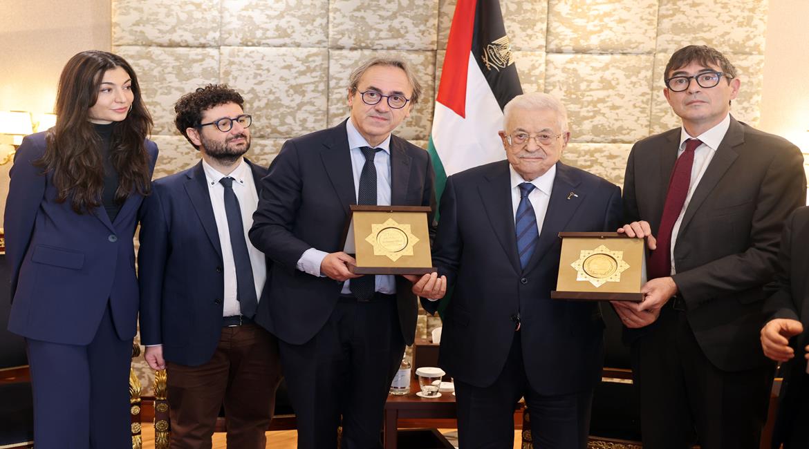 الرئيس محمود عباس أثناء لقائه وزير الخارجية الإيطالي انتونيو تاياني