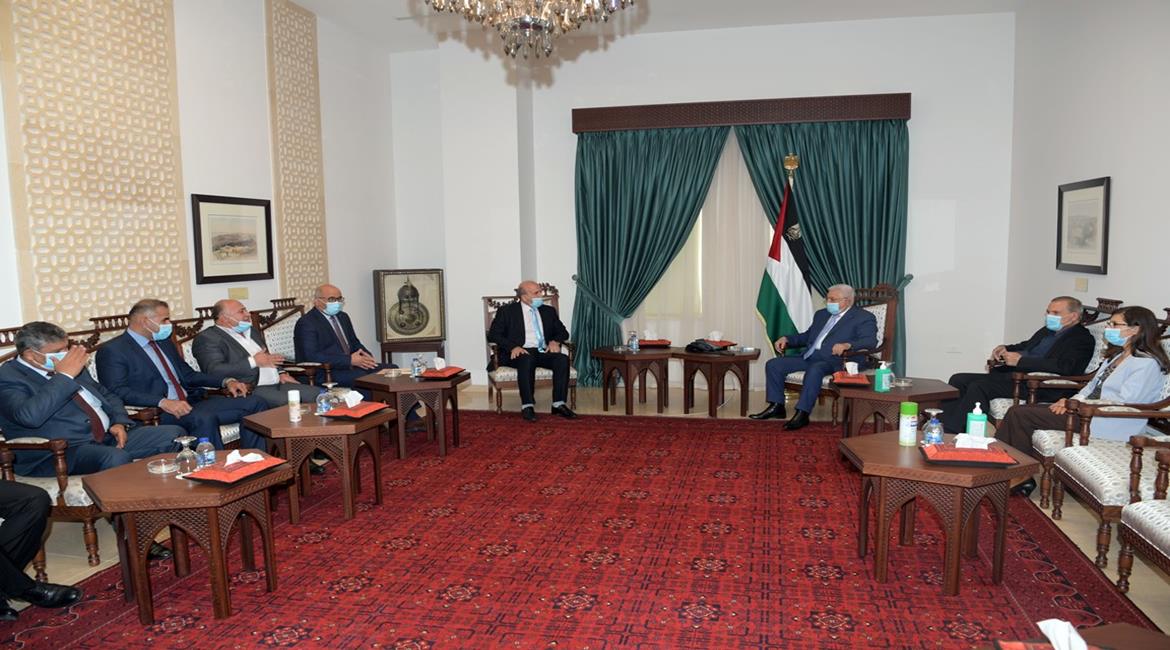 رام الله - الرئيس محمود عباس، أثناء لقائه رئيس هيئة التوجيه السياسي والوطني اللواء طلال دويكات.
