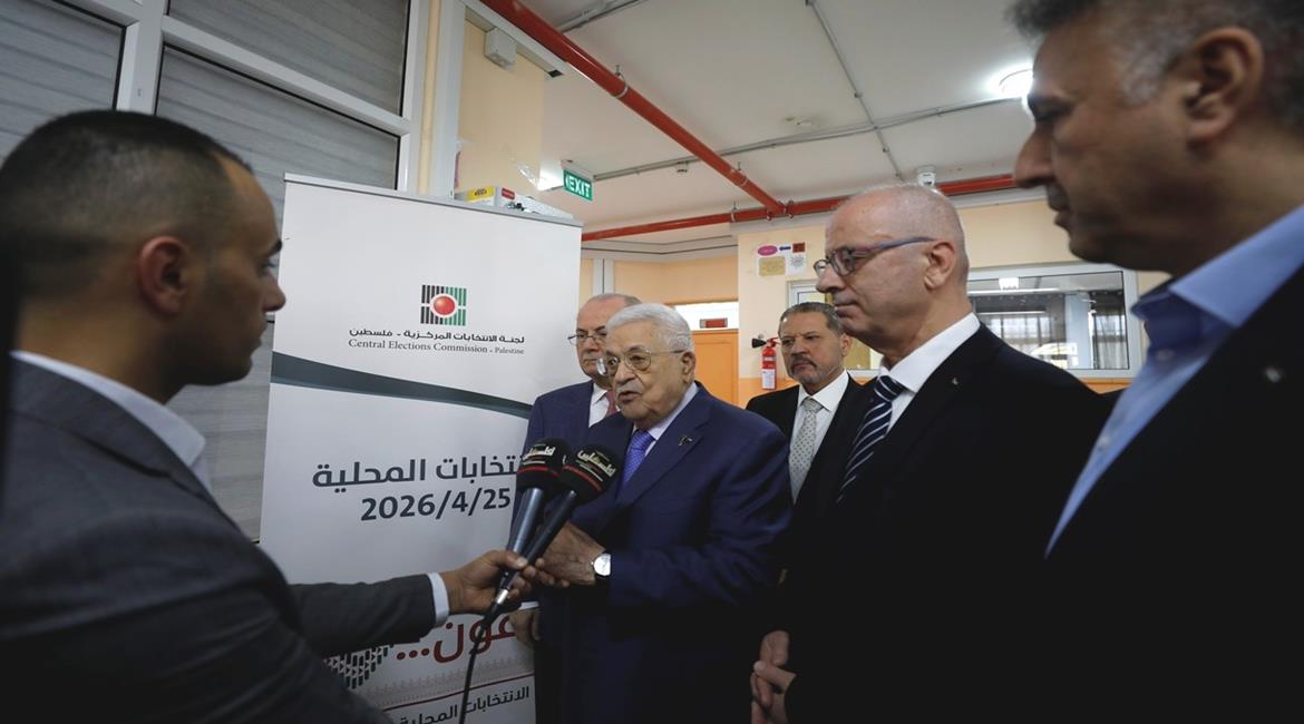 الرئيس محمود عباس، يدلي بصوته في انتخابات الهيئات المحلية لعام 2026، بمركز الاقتراع في مدرسة المستقبل الصالح بمدينة البيرة