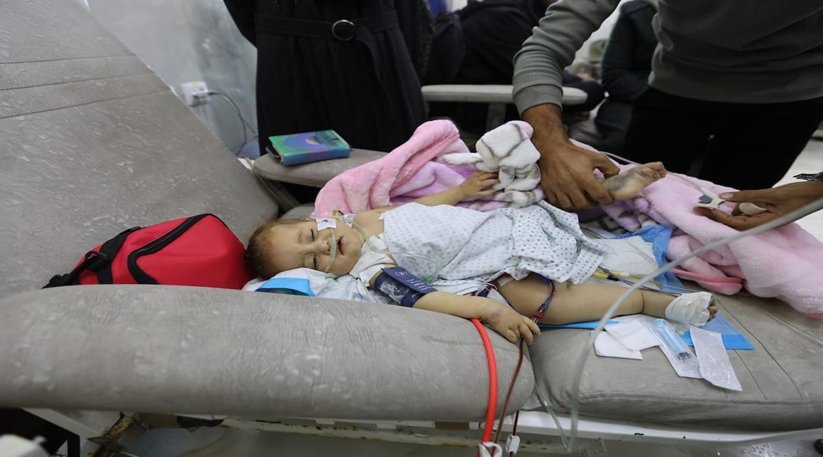 الطفلة سما أبو عجوة المصابة بمرض نادر، تتلقى الرعاية الطبية المحدودة في مستشفى الشفاء بمدينة غزة وسط نقص حاد في الأدوية بسبب إغلاق المعابر