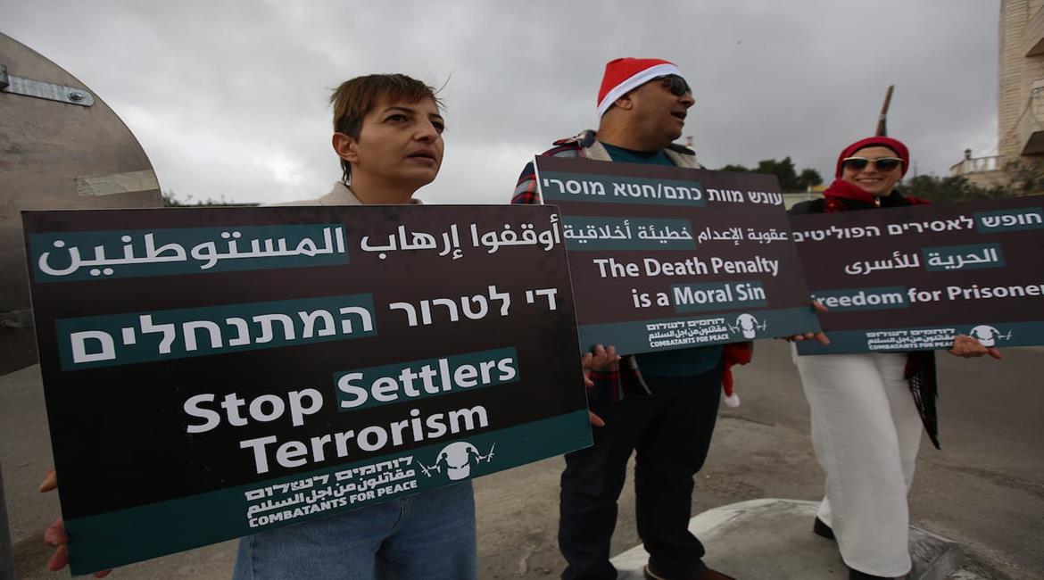 نشطاء يشاركون في احتجاج سلمي في بيت جالا، للتنديد بسياسات الاحتلال في الضفة الغربية، وتحديدا مشروع قانون إعدام الأسرى الفلسطينيين