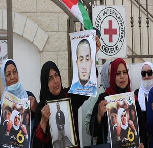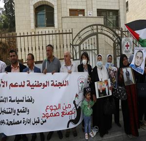 نابلس - مواطنون وأهالي أسرى ينظمون وقفة تضامنية مع الأسرى في سجون الاحتلال أمام مقر الصليب الأحمر الدولي في نابلس