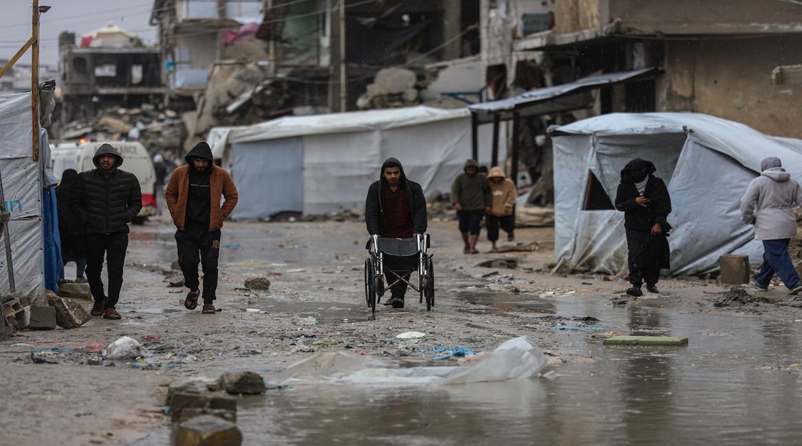 نازحون يكافحون لمواصلة حياتهم اليومية وسط الأنقاض التي خلّفتها الهجمات الإسرائيلية على غزة في ظلّ المنخفض الجوي والبرد القارس