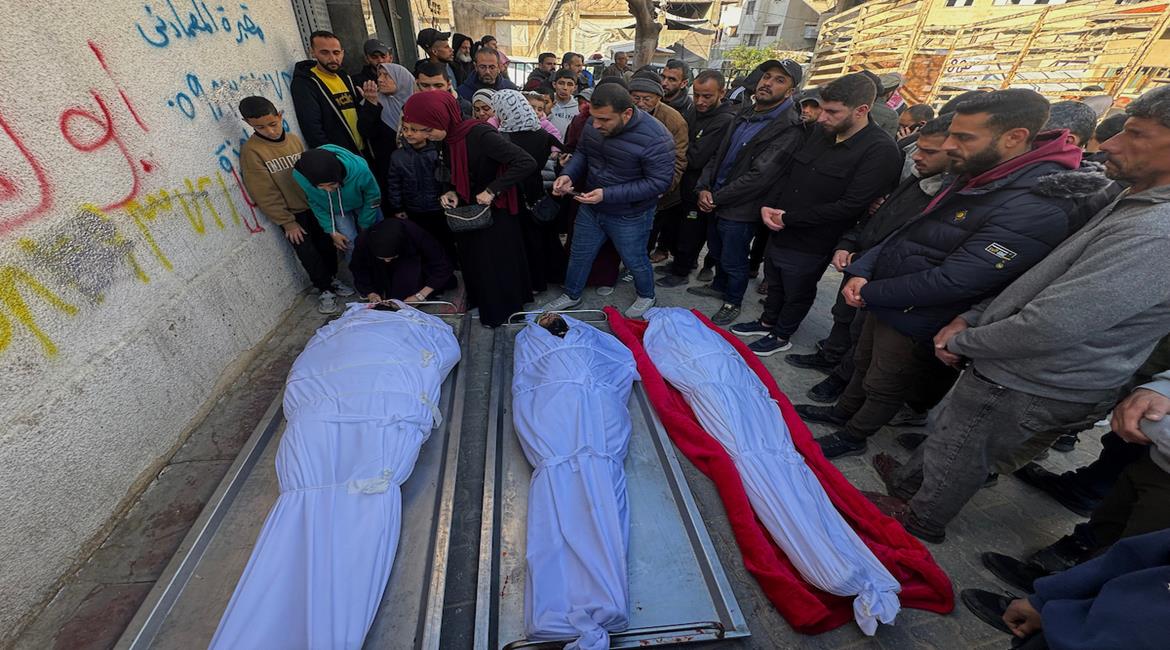 وداع وتشييع 3 شهداء في مستشفى الشفاء ارتقوا جراء قصف الاحتلال على حي الزيتون شرق مدينة غزة
