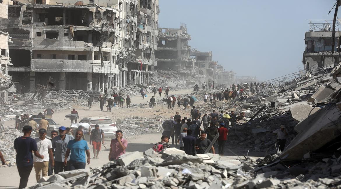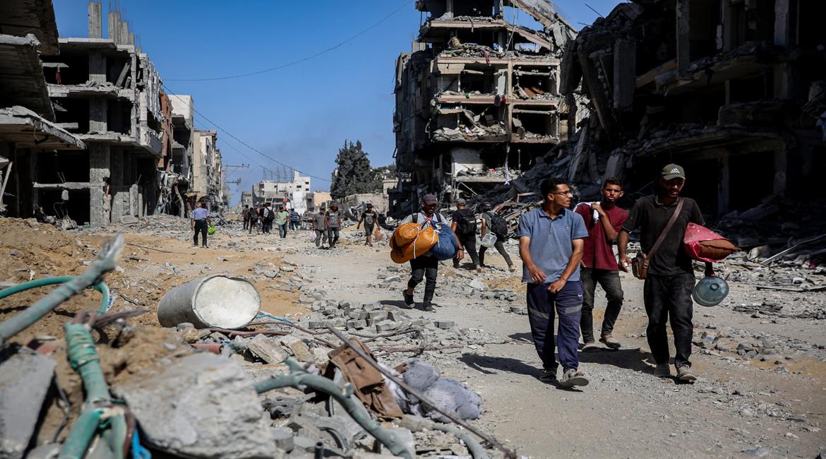 مواطنون يعودون الى حي النصر بعد انسحاب قوات الاحتلال الاسرائيلي وتدميره للمنطقة