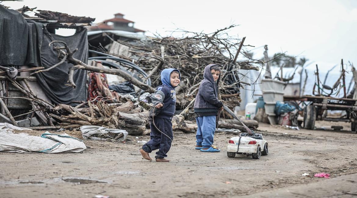 نازحون يواصلون حياتهم اليومية وسط الدمار والبرد القارس في خيام مهترئة في مخيم الزوايدة