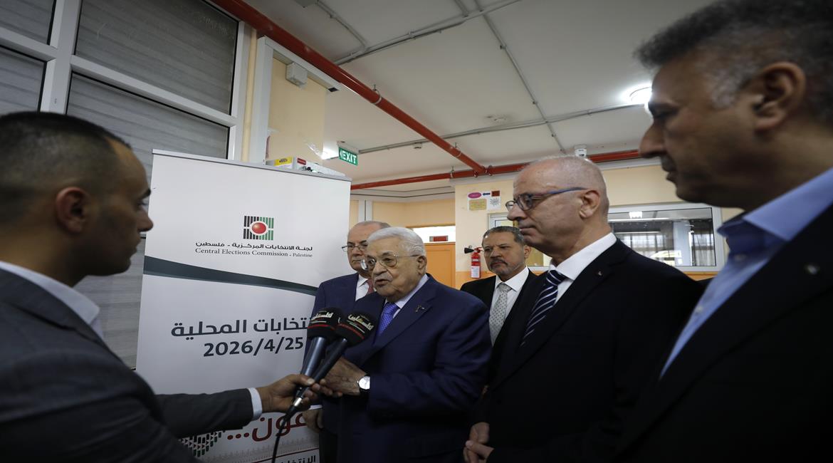 الرئيس محمود عباس، يدلي بصوته في انتخابات الهيئات المحلية لعام 2026، بمركز الاقتراع في مدرسة المستقبل الصالح بمدينة البيرة