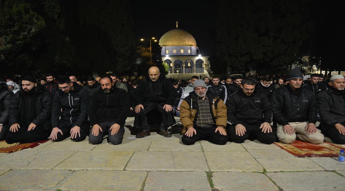 مواطنون يؤدون صلاتي العشاء والتراويح في المسجد الاقصى المبارك