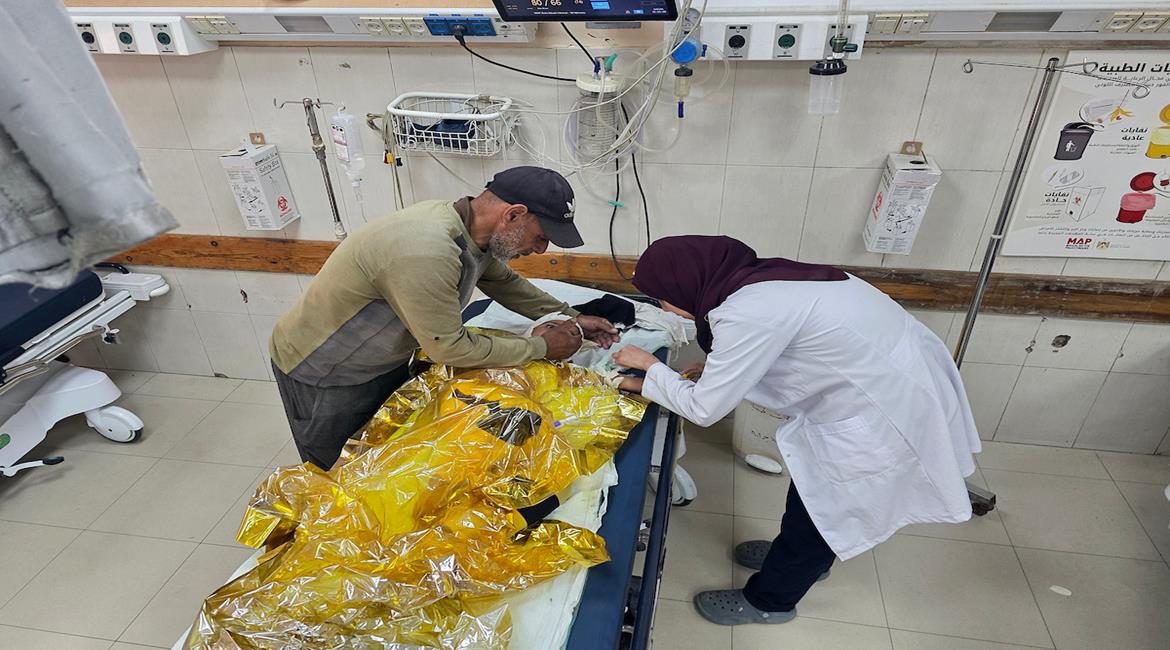 وصول عدد من المصابين بينهم ثلاثة أطفال أحدهم في حالة حرجة إلى مستشفى المواصي الميداني جراء استهداف السفن البحرية الإسرائيلية النازحين بالقرب من الشاطئ في خان يونس