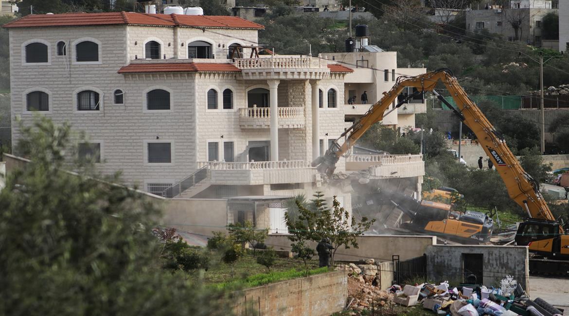 قوات الاحتلال تهدم منزلا مكونا من أربعة طوابق في قرية شقبا غرب رام الله، تعود ملكيته للمواطن إبراهيم عبد الله قدح