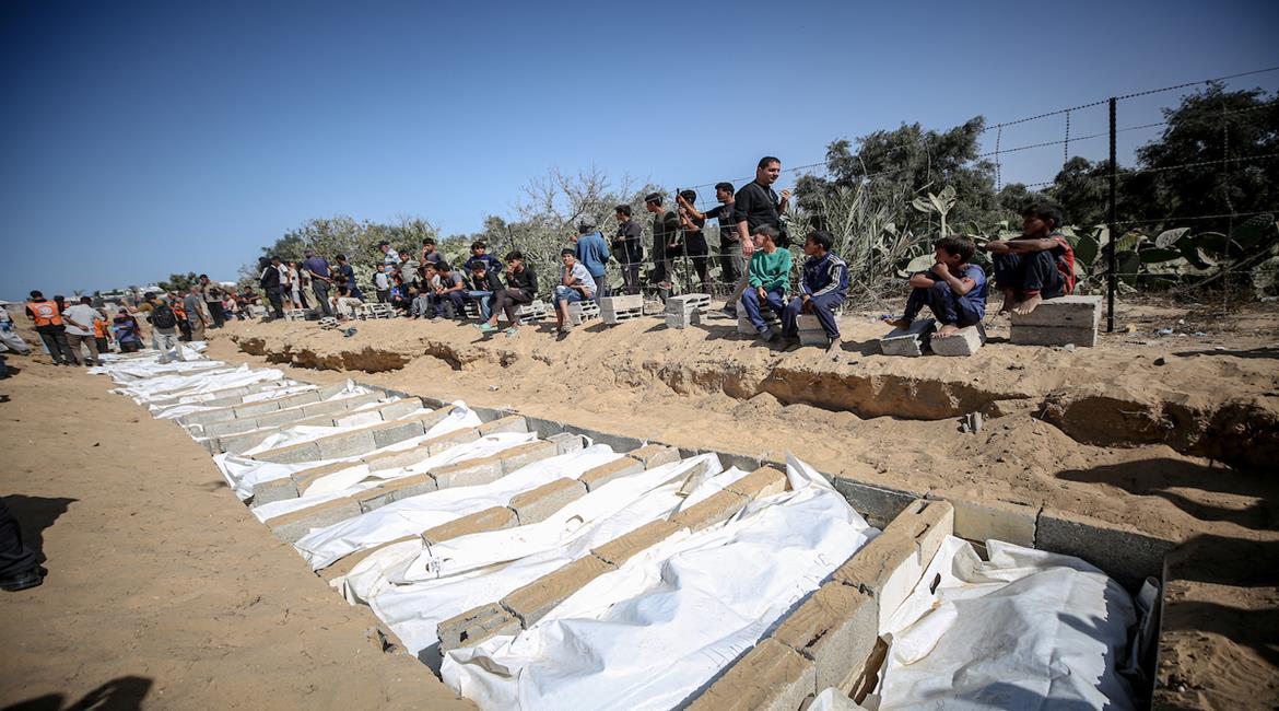 دفن جثامين عدد من الشهداء مجهولي الهوية بمقبرة جماعية في دير البلح وسط قطاع غزة بعد استلامها من الاحتلال الإسرائيلي