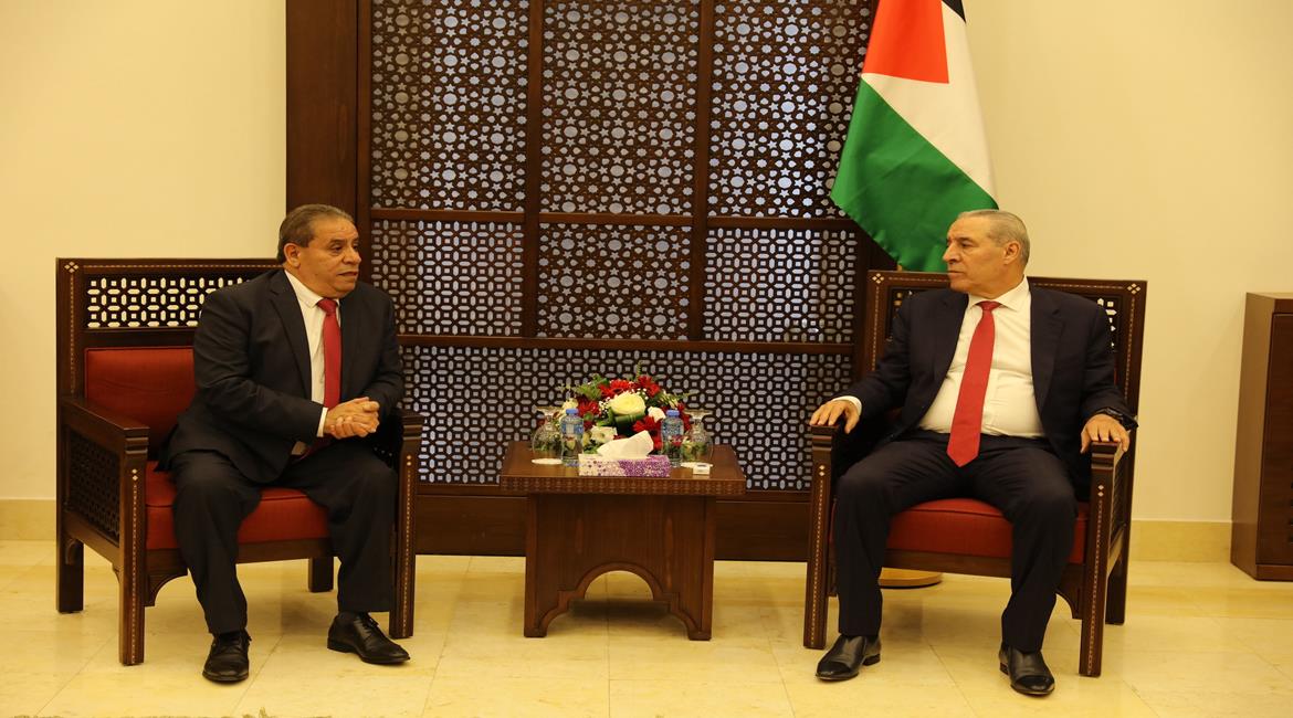 نائب رئيس دولة فلسطين حسين الشيخ يستقبل وزير الداخلية الأردني مازن الفراية في مقر الرئاسة في بيت لحم