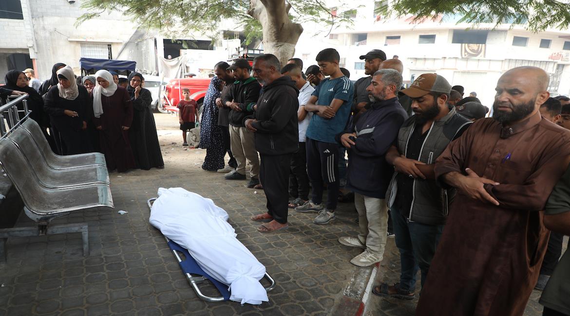 وداع وتشييع عدد من شهداء القصف الإسرائيلي في مستشفى ناصر في خانيونس جنوب قطاع غزة