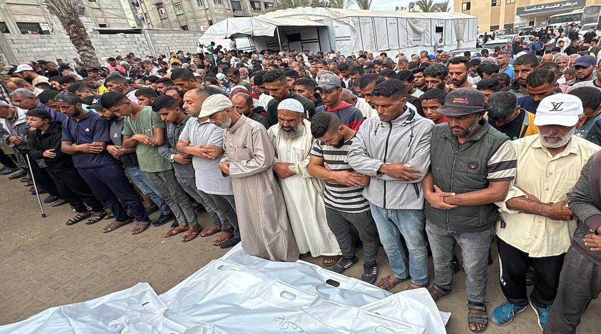 وداع وتشييع عدد من الشهداء من بينهم اطفال في مستشفى شهداء الاقصى بدير البلح وسط قطاع غزة
