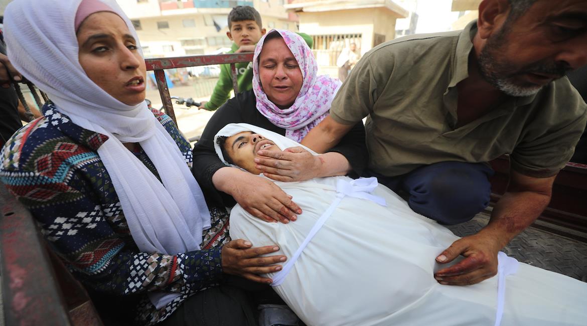 وداع جثمان الشهيد بهاء حماد الفجم (28 عاما) في مستشفى ناصر والذي استشهد برصاص جيش الاحتلال قرب خيمته شرق خان يونس جنوبي قطاع غزة