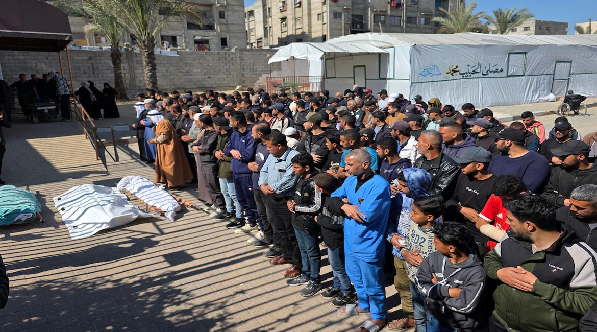 وداع وتشييع جثامين عدد من الشهداء الذين ارتقوا بنيران الاحتلال الإسرائيلي في مستشفى الأقصى في دير البلح وسط قطاع غزة