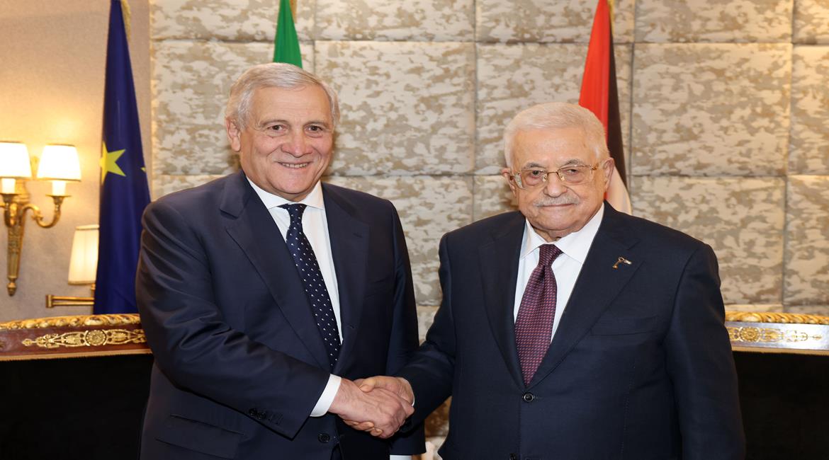 الرئيس محمود عباس أثناء لقائه وزير الخارجية الإيطالي انتونيو تاياني