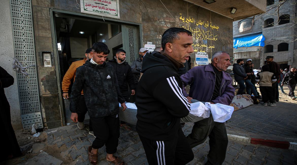 تشييع شهيد في مستشفى الشفاء، ارتقى جراء استهداف إسرائيلي الليلة الماضية غرب مدينة غزة