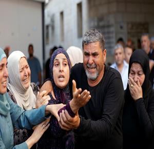 وداع وتشييع شهيدين داخل مستشفى ناصر في خان يونس، ارتقيا بنيران الاحتلال في منطقة المواصي برفح جنوب قطاع غزة