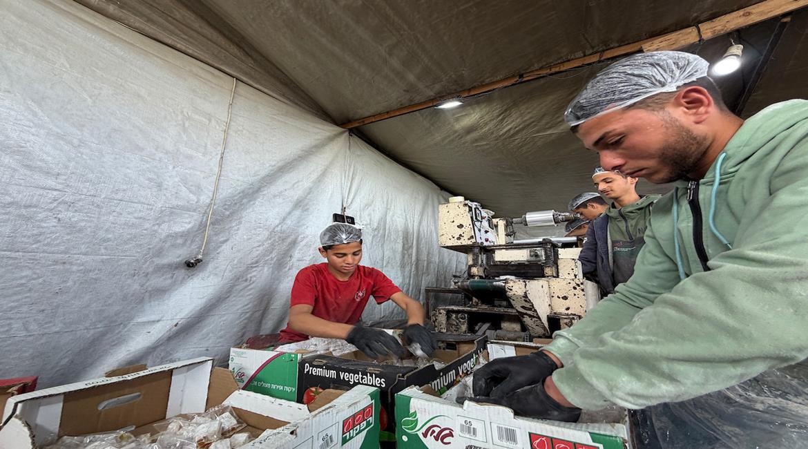 يواصل جهاد الجعفري، صناعة الحلقوم في مصنع بسيط من القماش المشمع والحديد بخان يونس استعدادًا لعيد الفطر، بعد تدمير الاحتلال لمصنعه الأصلي الذي أُسس عام 2012 خلال الحرب الأخيرة