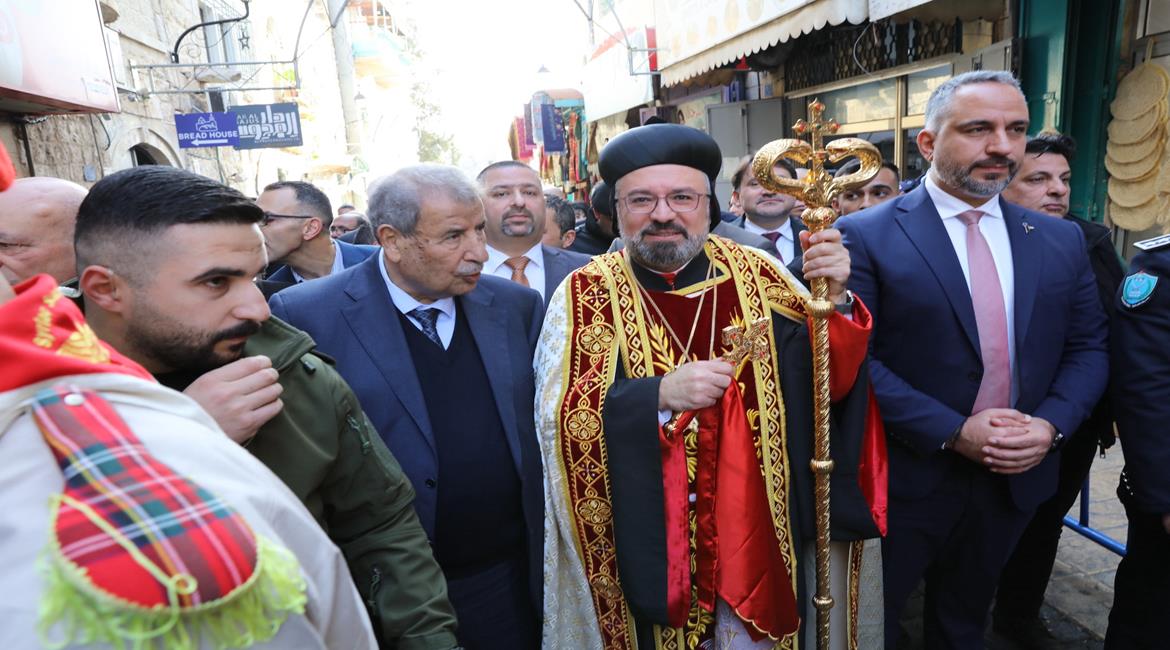 وصول موكب النائب البطريركي في القدس والأردن وسائر الديار المقدسة المطران مار انتيموس جاك يعقوب، إلى مدينة بيت لحم، للمشاركة في قداس منتصف الليل، لمناسبة عيد الميلاد المجيد حسب التقويم الشرقي