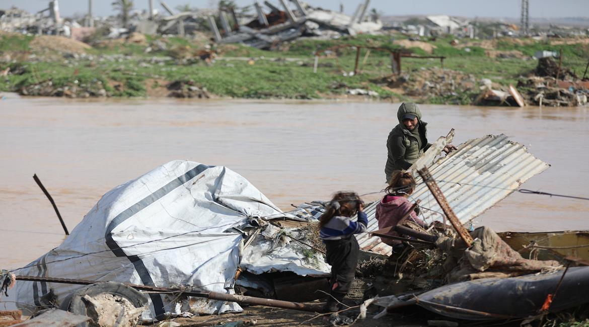 فيضان المياه في وادي غزة بفعل الاحتلال يزيد من معاناة العائلات النازحة التي كانت تقيم في خيامها قرب منطقة الوادي